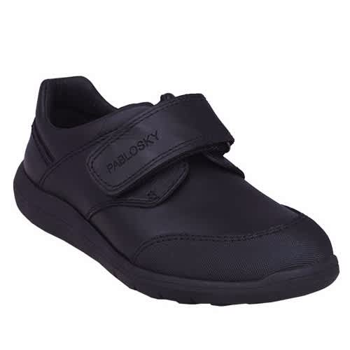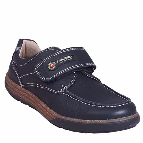 Pablosky System incorporates exclusive technology: Foreign bovine skin; Intech absorbent inner lining; Non-slip rubber sole.anatomical bridge from size 20 to size 30.