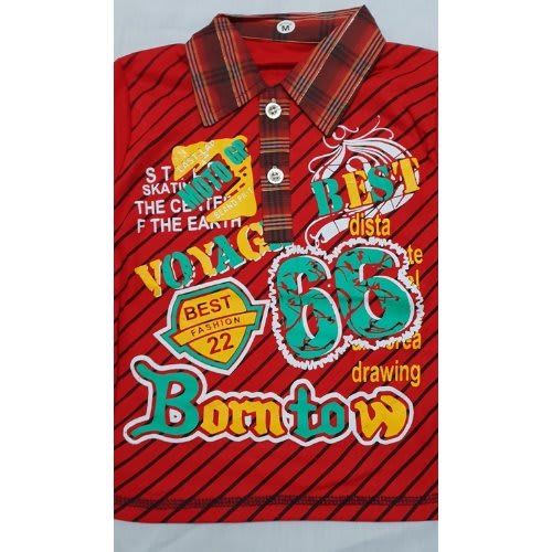 Buy Boys Long Sleeve Checked Collar T-Shirt With Jeans Trouser - 2 Piece Set - Red in Nigeria