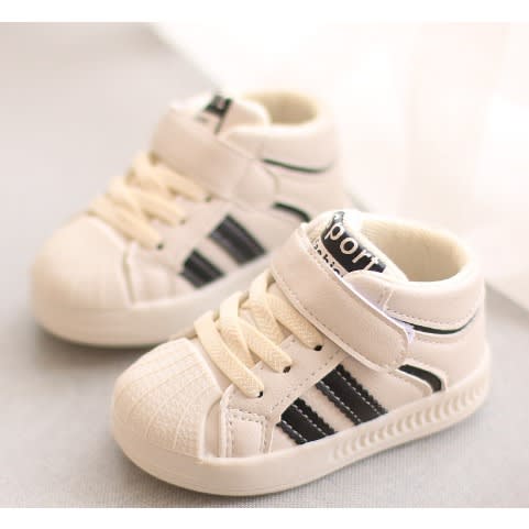 Baby sneakers shoes is a comfortable sneakers for kid boys and girls. It has a rubber sole which makes it comfortable for kids to move with. It has a light weight and an anti slip feature. It can be worn to different occasions. The outer material is made of leather and the inner material is made of cotton. It is easy to clean and maintain.