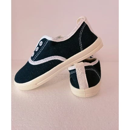 Must have slip-on, perfect for sports and PE activities at school, they are suitable for both boys and girls. These black slip-on features a black canvas upper, a rubber sole that is durable with a elastic at the edges all on a flat sole.