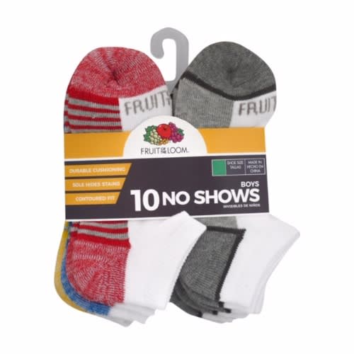 Boyish contrasting colors make these socks so versatile and a great value too. Pack includes 7 pair of different graphics and colour socks. Soft cotton blend terry keeps little feet warm. No skid soles. Machine washable.Note: graphics on the socks may vary.