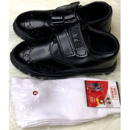 Buy Boys Strap Leather Back to School Shoe with Free Pair of Socks - Black in Nigeria