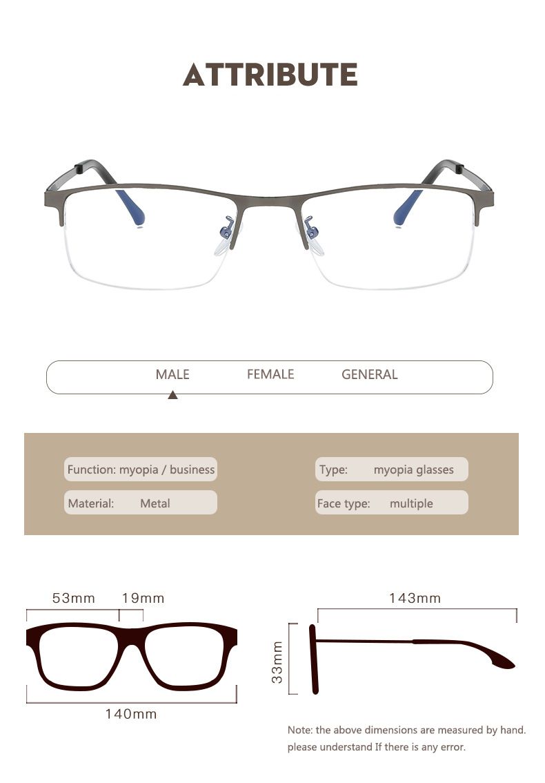 Buy BOYSEEN New Half-frame Anti-blue Light Myopia Mirror Finished Men's Myopia Glasses Optical Finished Mirror LG190 in Nigeria