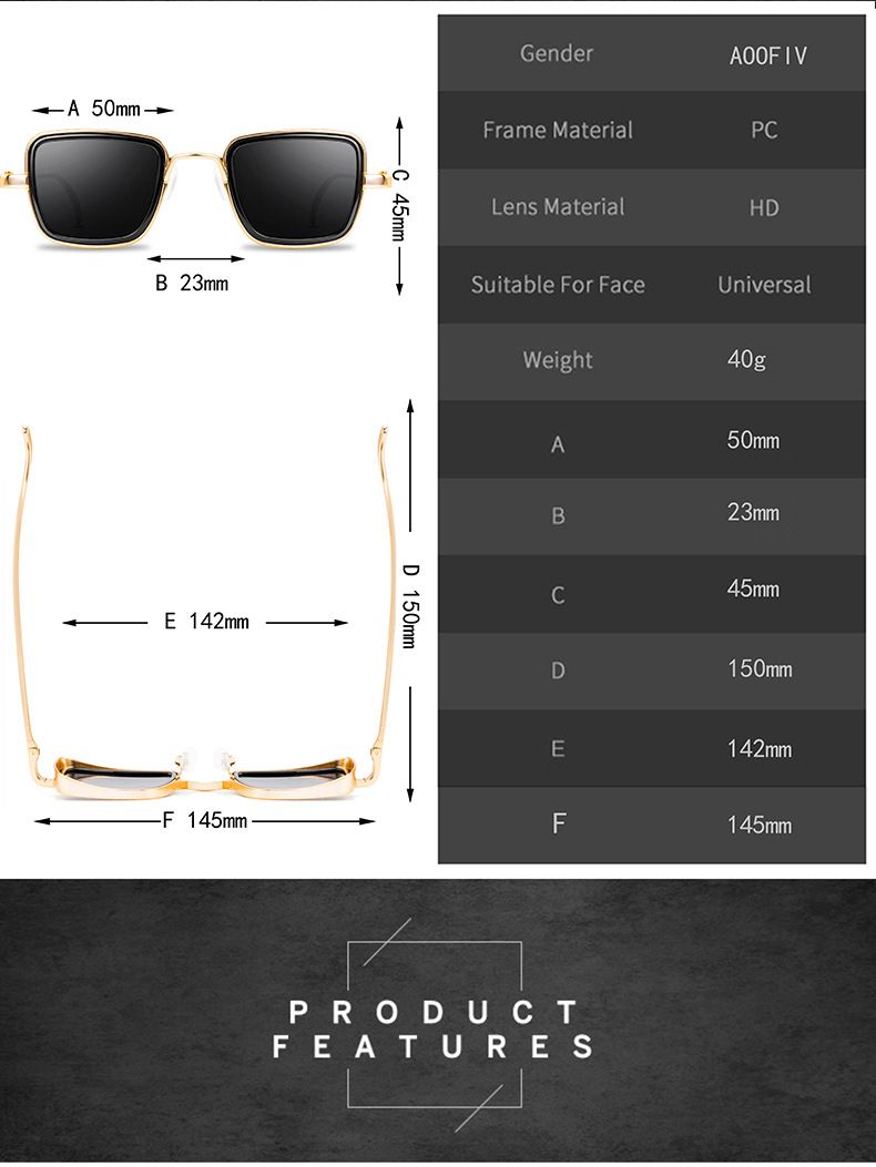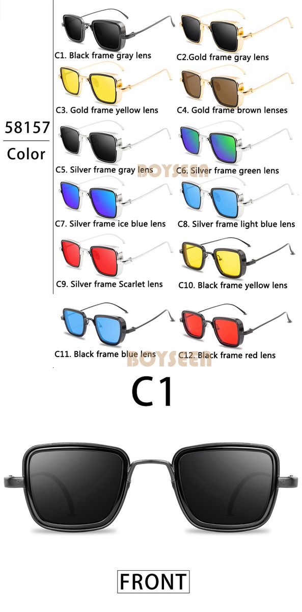 Lens color: silver frame gray, silver frame blue silver, black frame gray, gold frame dark green, gold frame tea, gold frame red, gold frame dark red, gold frame yellow, gold frame blue, gold frame double red film