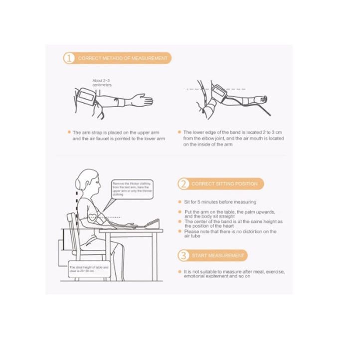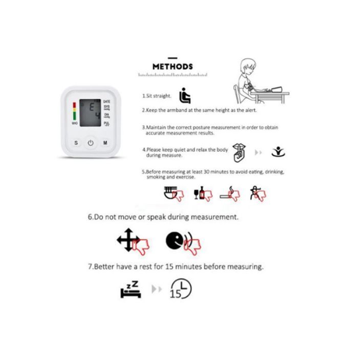 Clock function, you can set year, month, day, hour, minute by yourself easily. Arm type of design,you need to take off your coat or your sweater for measuring accurately.Intelligent pressurize and decompress design, with IHB heart rate monitoring function, more practical. LCD display ensures clear numbers for the elderly and you can see the systolic pressure, diastolic pressure and pulse easily.The Systolic pressure and diastolic pressure separately show people can judge the data whether in the normal range at first sight.Larger memory storage and irregular heartbeat detection,remind irregular heartbeat and show average measurement of the last three times.