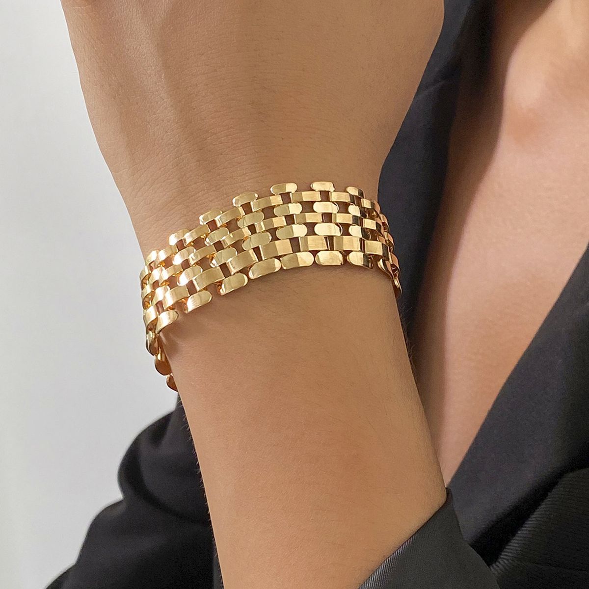 Wide Bracelet;Retro Simplicity Design Thick Straps Bracelet Set;Combination Bracelet Wild Wide Chain Bracelet;Female Chain Bracelet Jewelry Decoration;Jewelry Gift Chain Bracelet Combo Set Alloy; Thick Bracelet Combo Set
