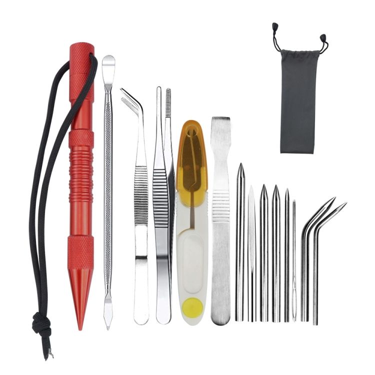 -12 pcs / set (about 172.5g/set): marlin nail x1, pin x1, 3x78mm umbrella rope needle x1, 5x78mm umbrella rope needle x1, 5x78mm flat umbrella rope needle x1, flattener x1, 6x78mm umbrella rope needle x1, 3x78mm curved needle x1, 5x78mm curved needle x1, 5x90mm steel needle x1, scissors x1, stainless steel tweezers x1