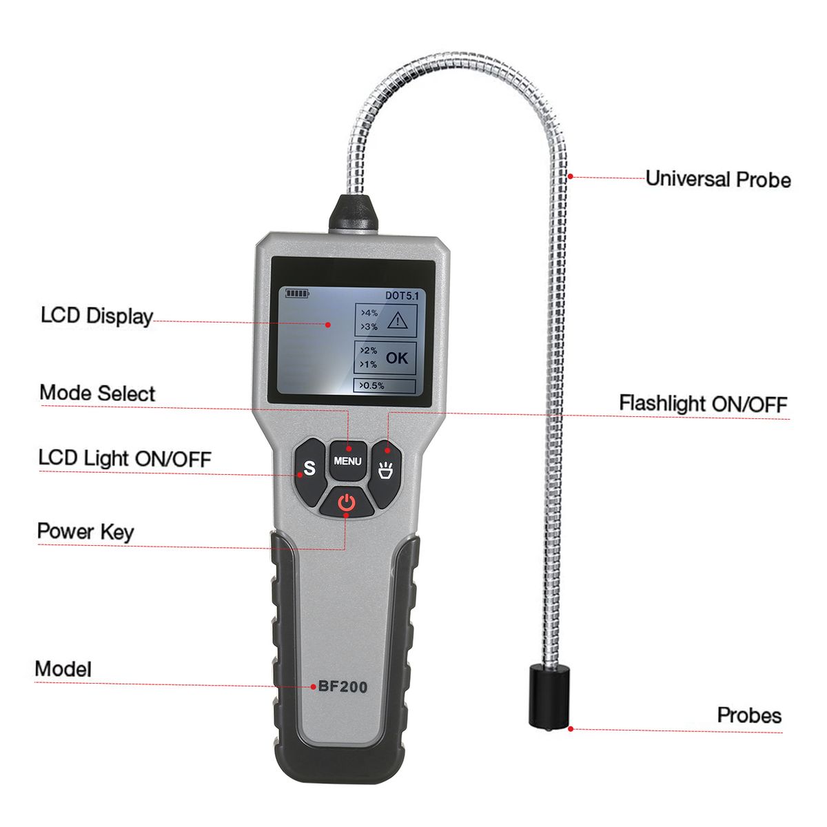Precision Testing amp; Universal Probe --- High sensitivity and precision probe, can be fast and accurate detect DOT-3, DOT-4, DOT-5.1 brake fluid and got result in seconds. The Goose Neck Probe provides flexibility on detection, which helps the detect process more elastic and efficiency.