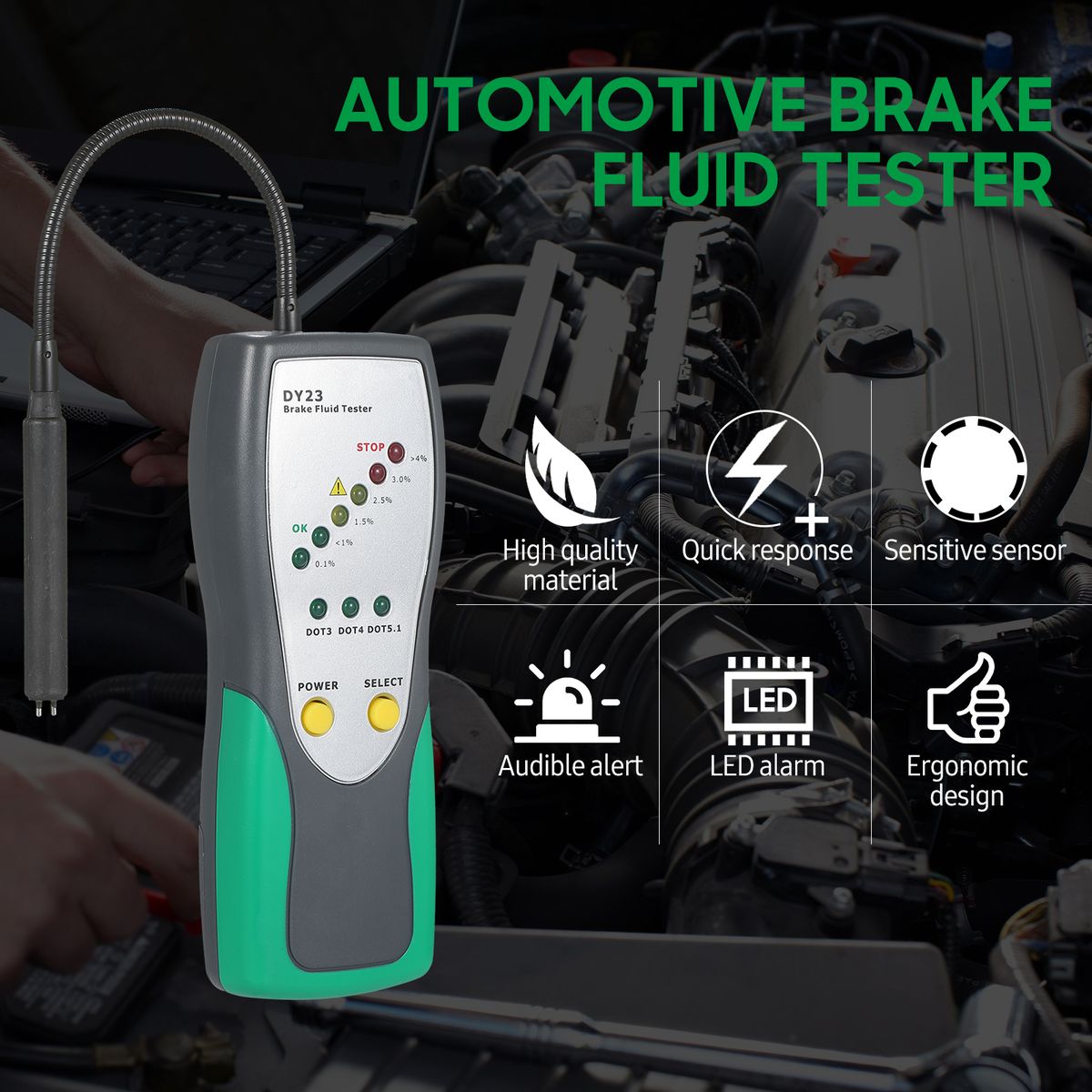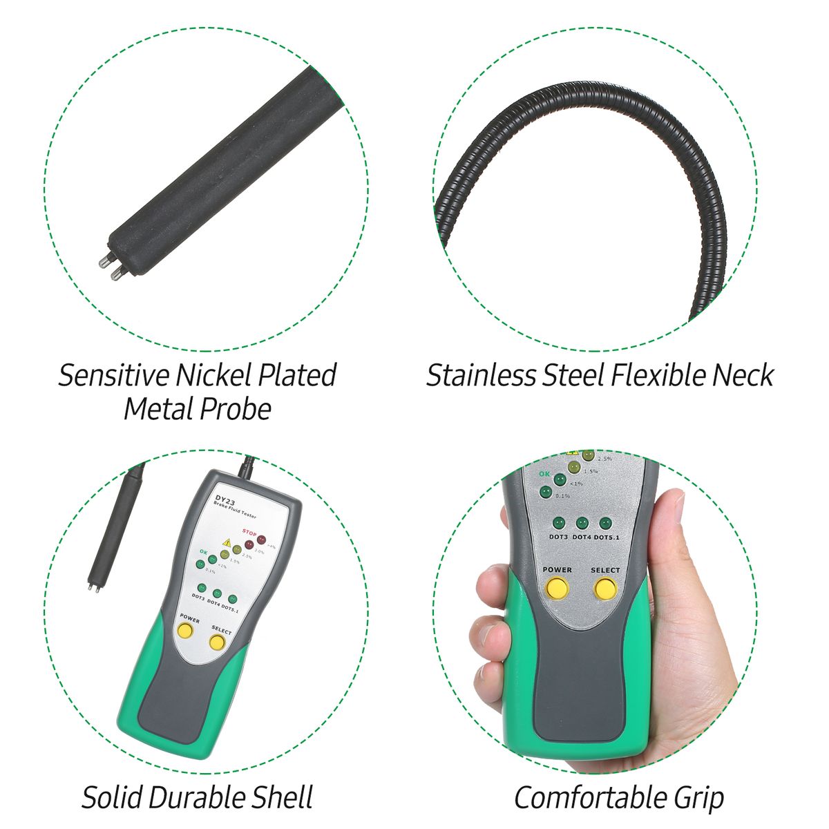 Convenience: handheld brake fluid tester, comfortable to grip, lightweight, portable, easy to store amp; carry, made with solid durable plastic shell amp; good electronic parts, stable, long lasting.
