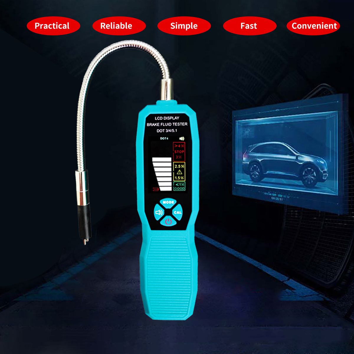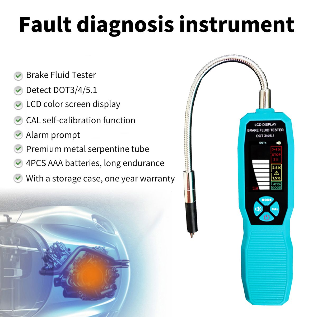Universal Fit for DOT3/DOT4/DOT5.1 Brake Fluid Detection: The brake fluid tester can support 3 brake oil type detection and detect DOT3/DOT4/DOT5.1 brake fluid.