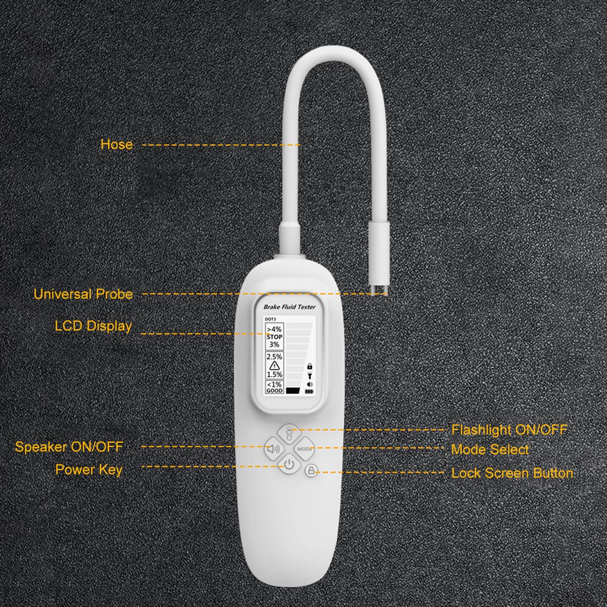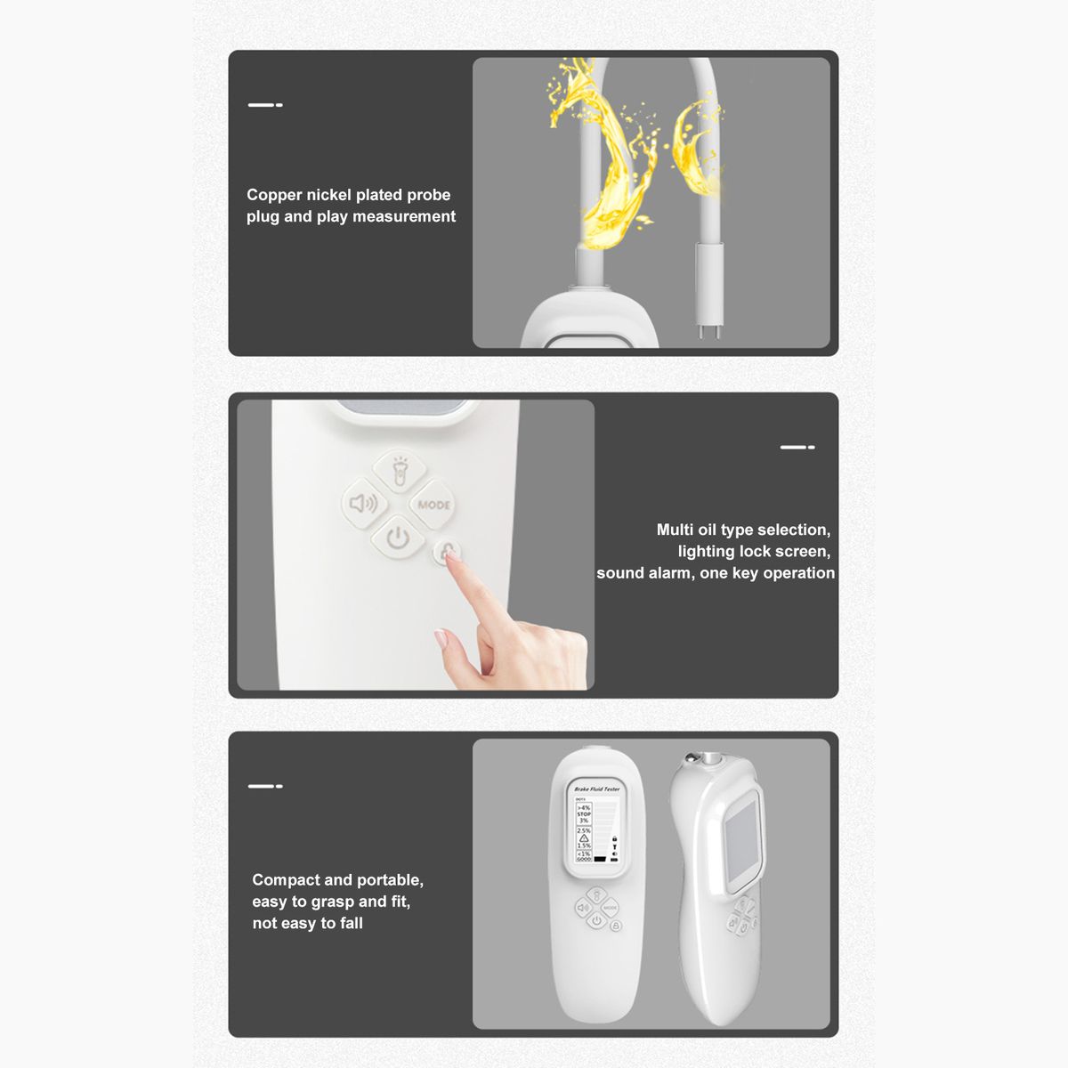Support multiple types of brake fluid in one tool:DOT3, DOT4, DOT5.1.