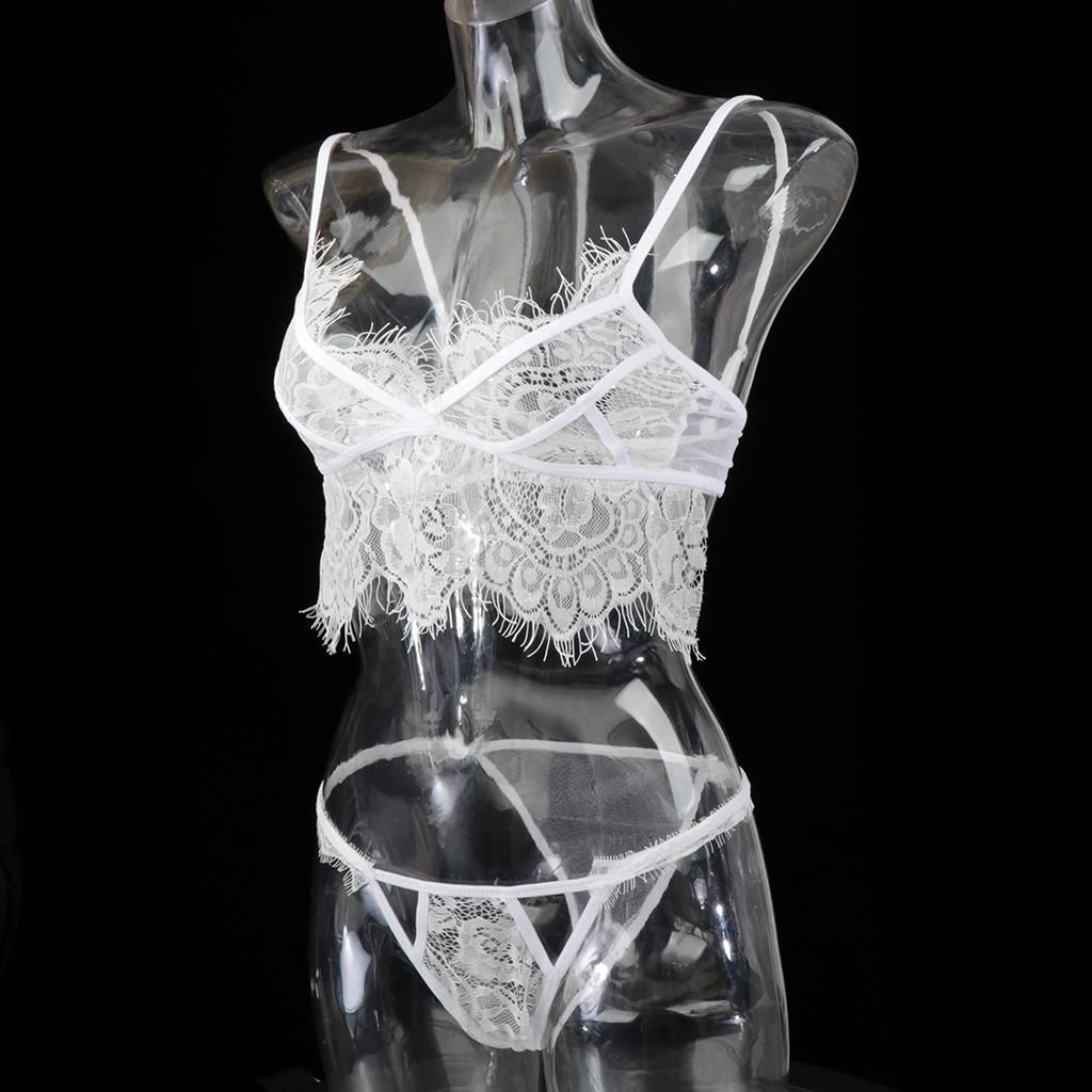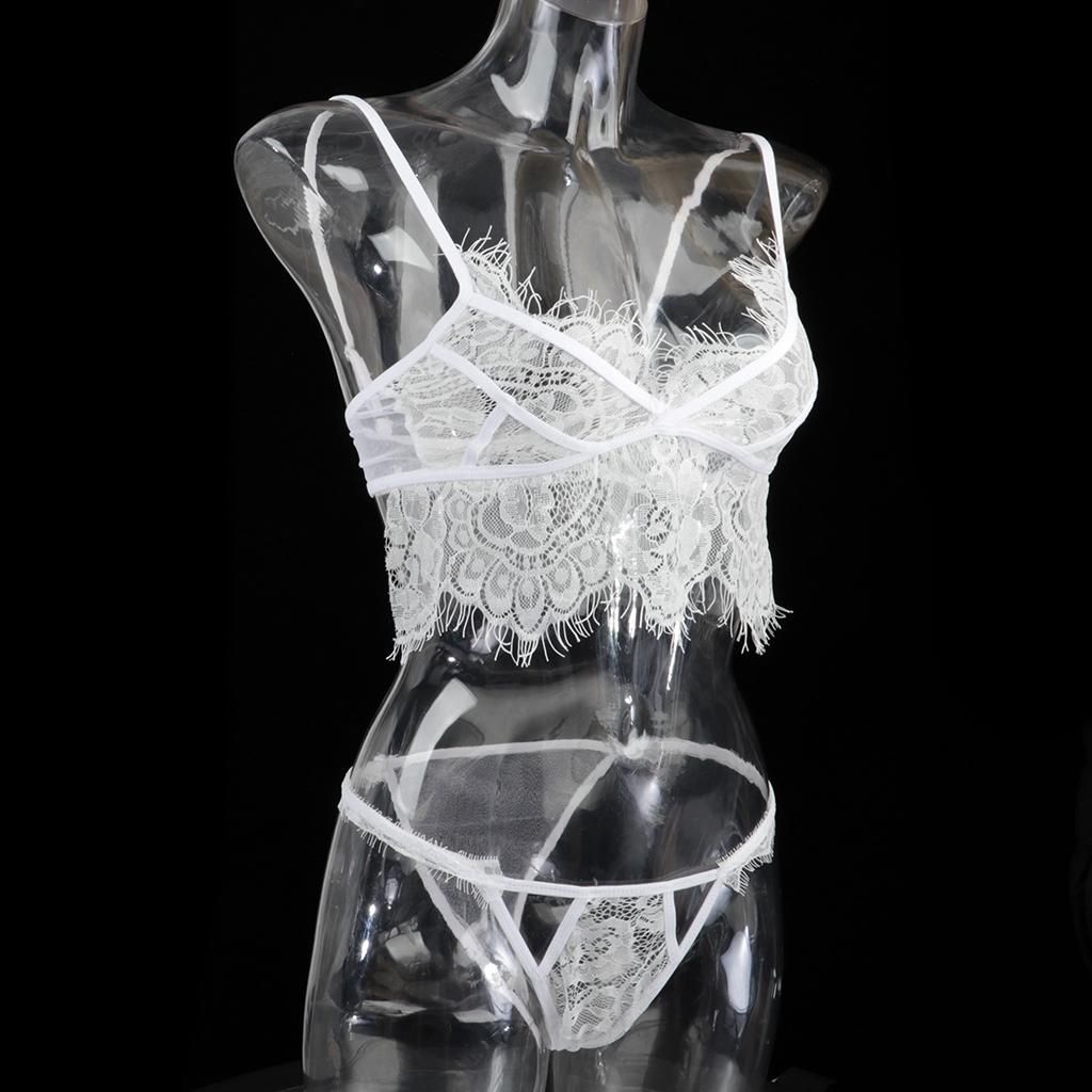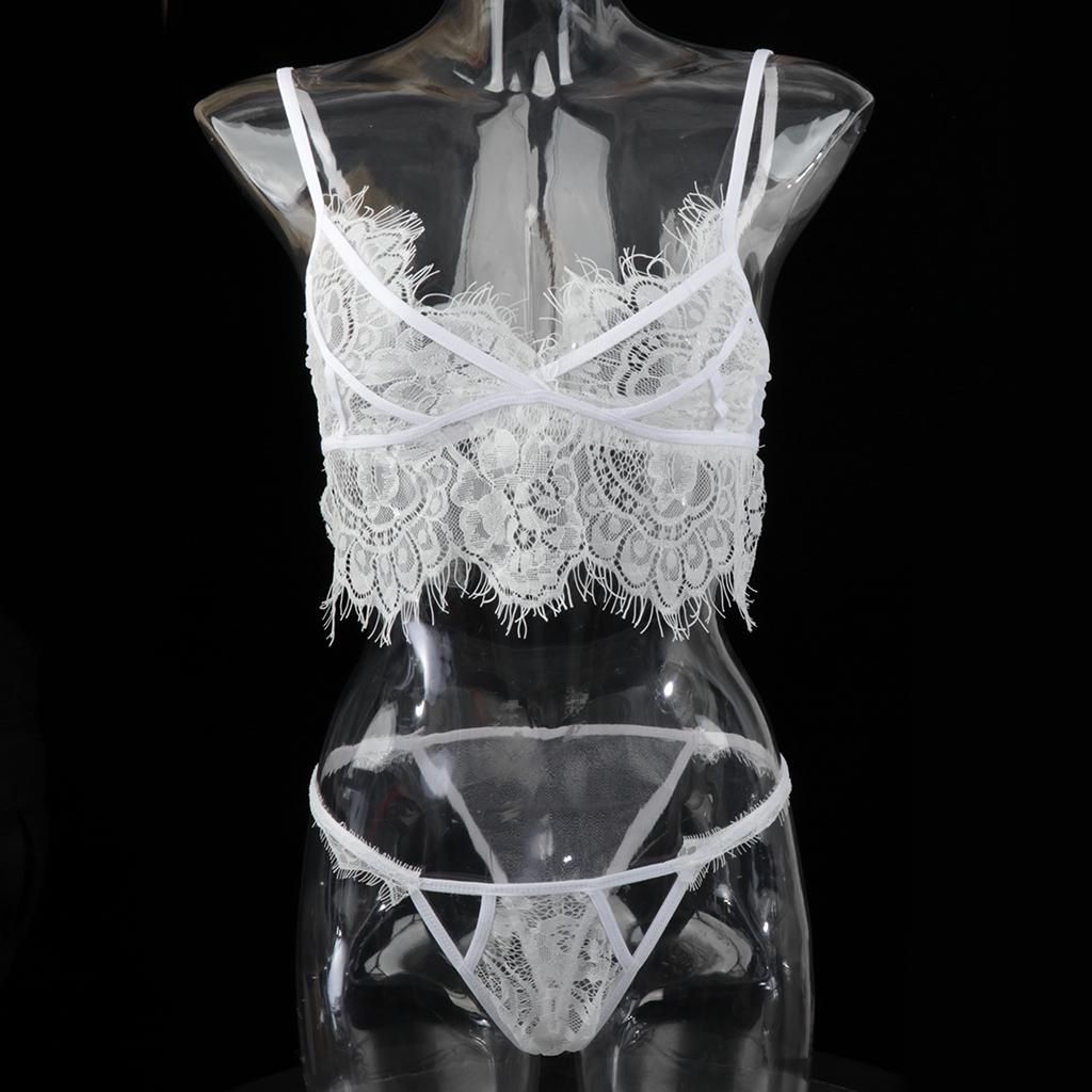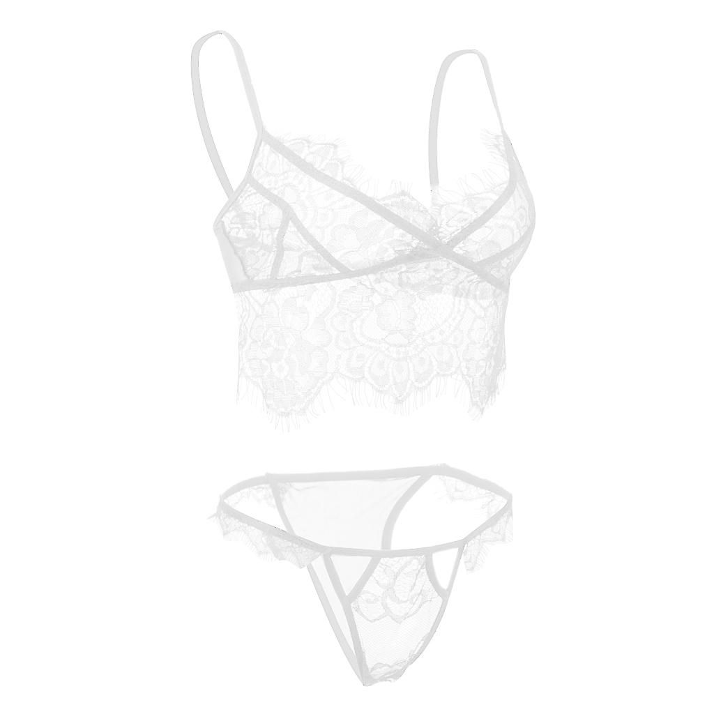 Women nightwear lingerie set, including a bralette and a g-string underwearMade of soft lace material, touch feelingFeaturing floral eyelash lace cups with adjustable strappy, back hook and eye closure, matching lace g-string pantyMake you look sexier, wilder and more attractiveGreat for bridal wear, nightwear, sleepwear, romantic night, birthday, holiday, honeymoon, wedding night, Valentines day, Christmas, anniversary or any occasion you celebrate.