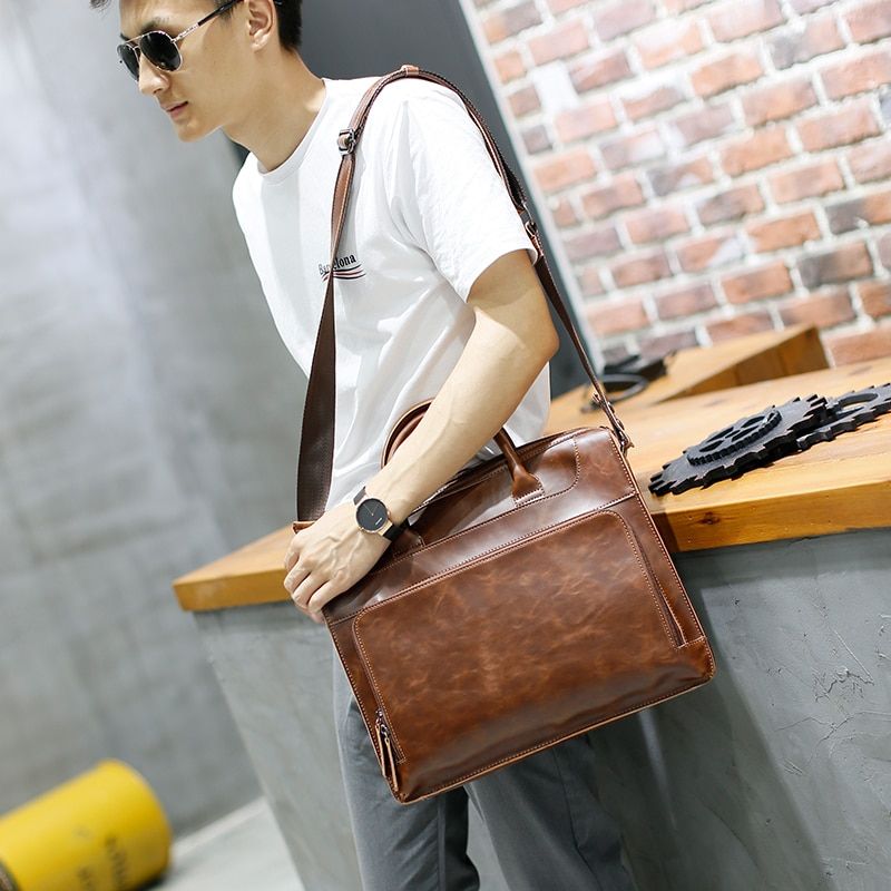 Fashion Men briefcase Material: Crazy horse pu leather Size: Length:38cm Width:9cm Height:31 cm Note 1: Due to different producing batches, there may be deviation of 1----2 CM for it. Note 2: Colors on your computer monitor may differ slightly from actual product colors depending on your monitor settings.'