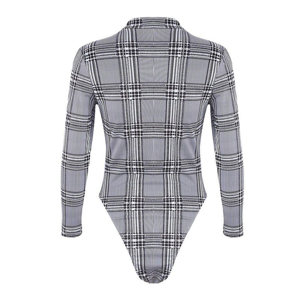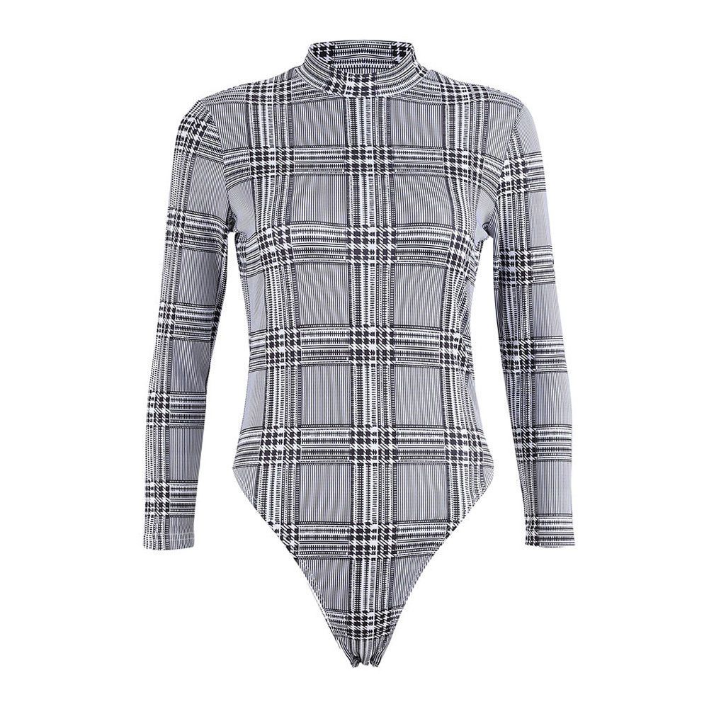 1X Brand Spring Autumn Sexy Womens Long Sleeve Romper Bodysuit Plaid Top Bodycon Skinny Body Suit Turtleneck Jumpsuit