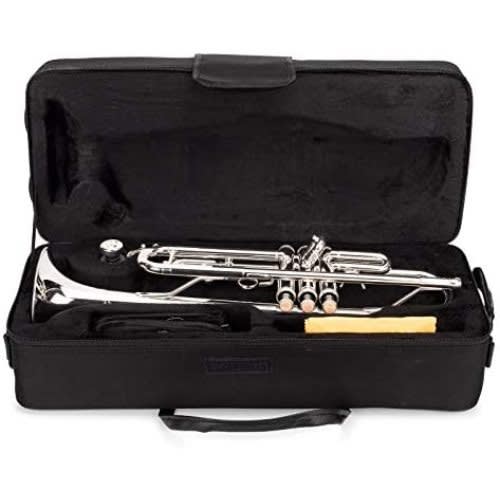 The trumpet is an Ideal for beginners and professional musicians. This trumpet features a phosphorus copper lead mouth pipe, topped with 3 comfortable white mother of pearl key inlaid and 3 smooth action valves. Every trumpet is checked to ensure that their high quality standards are met. This is why thousands of instructors have approved these trumpets. This trumpet package includes a plush-lined nylon covered hard shell case, a pair of gloves, a soft cleaning cloth mouth piece. Buy with confidence.