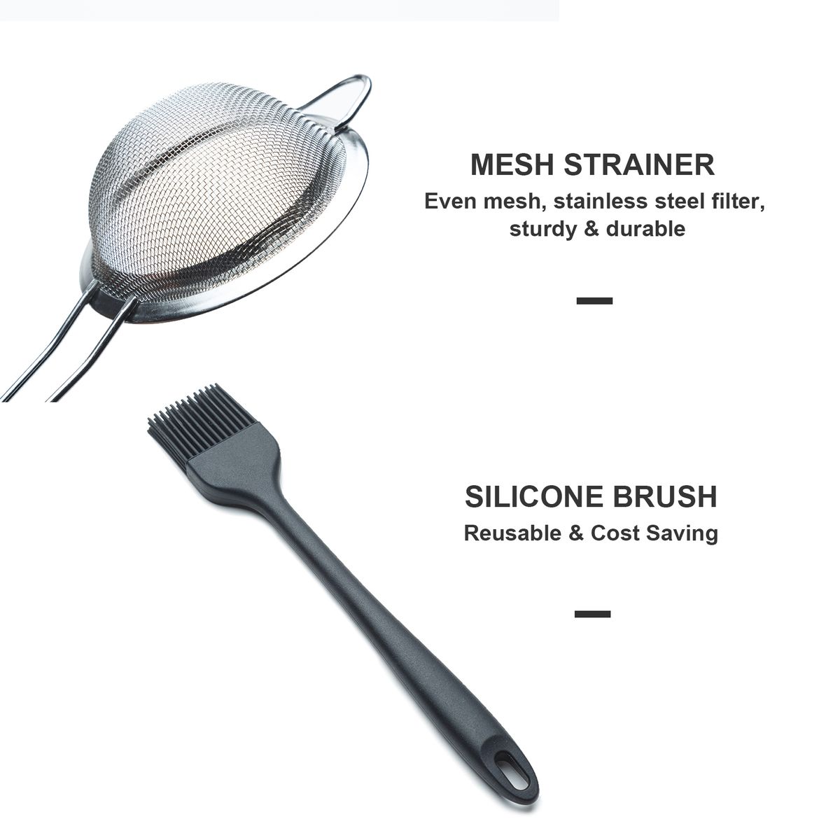 PACKAGE INCLUDES - You will get 1 dough whisk, 1 bread lame, 9 replacement-blades, 1 scraper, 1 mesh strainer and 1 silicone brush. They are easy to use. Except for the silicone brush, all are made of stainless steel. They have the characteristics of high hardness and corrosion resistance, sturdy and durable for your daily use.