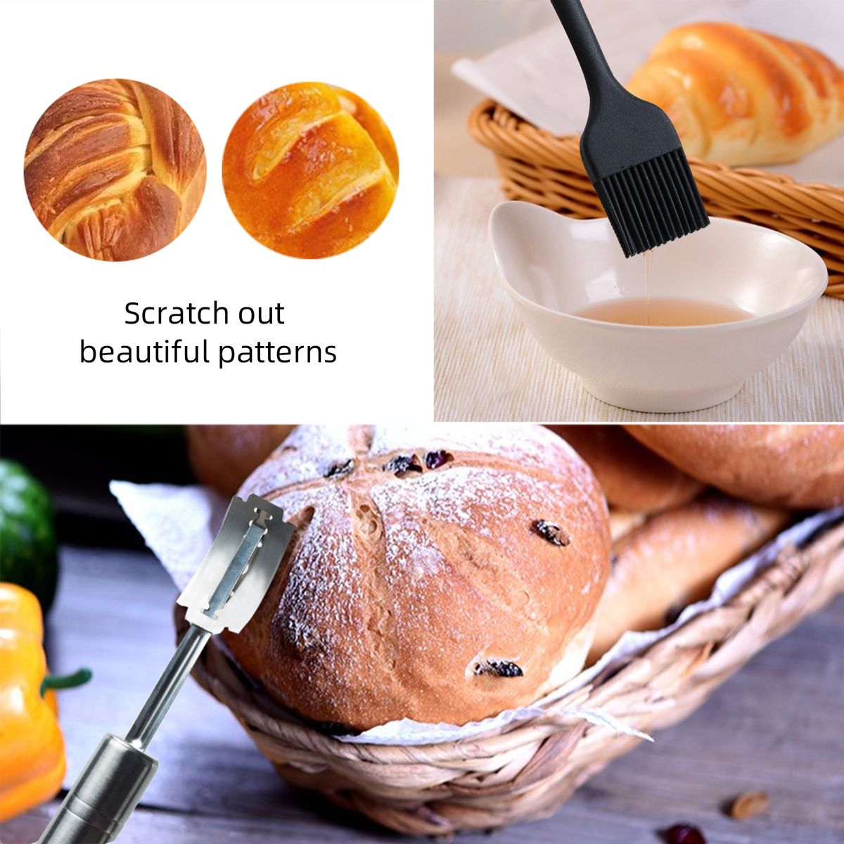 Do you want to make quicker breads? Our bread making tools kit is the essential baking tools! Except for the silicone brush, all are made of stainless steel, sturdy and durable for your daily use. Upgraded dough whisk with 2 eyes for faster baking. Curved-head design bread lame with ergonomic handle for your comfort. Non-stick and easy to clean. Nice for baking cake, dessert, pastry, etc.