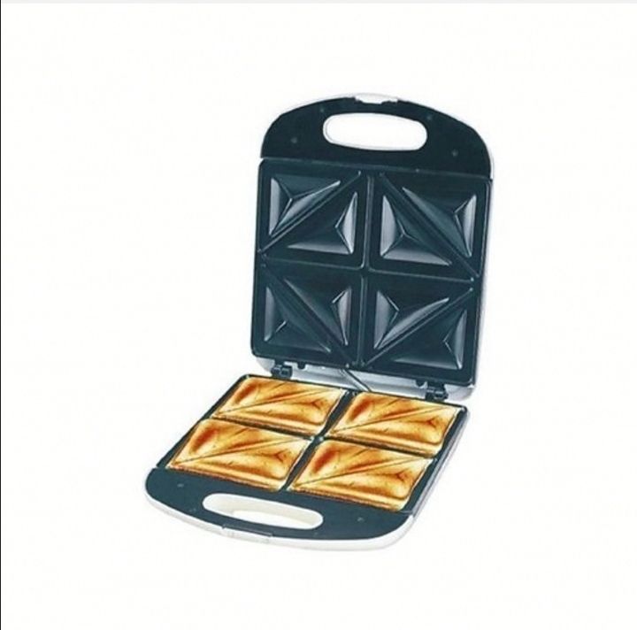 Durable and easy to clean Makes 4 sandwiches trianglesHeat resistantElegant designSimple operationEasy to clean.4 slice sandwich toaster with cold touch housing, which has durable non stick coated plate for easy cleaning and no sticking and no burning with your sandwich making.