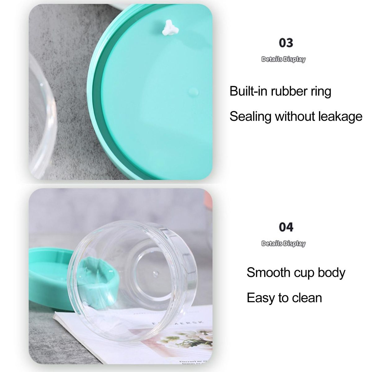 With good sealing, the salad cup is not easy to leak food out. Smooth and burr-free, it not only will not scratch your or your kid's skin when eating, but also easy to clean.