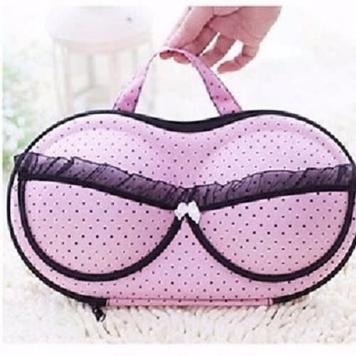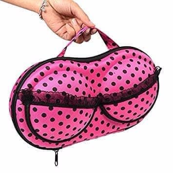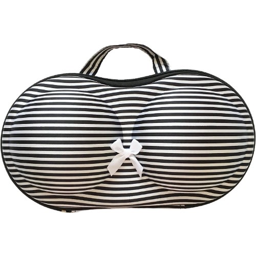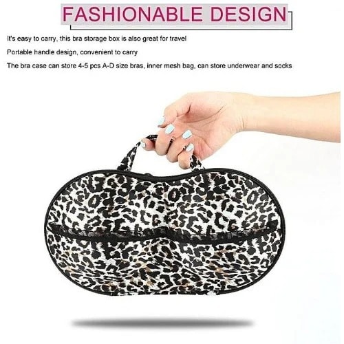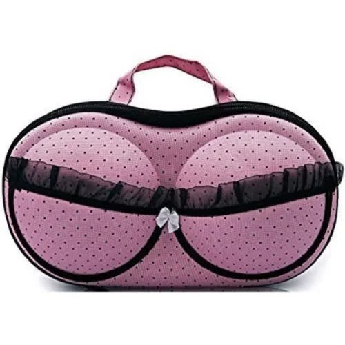 Durable, Portable, Sophisticated, and Stylish Design.Protects padded and underwire Bras from Crimping, Crushing, and Creasing.Hard Moulded Case Prevents Dents and Bent underwired.Can hold up to 1- 5 brasGreat for Traveling or At-Home Storage.This cute bra case keeps your bras protected and organized during travelingNow relax and safely store your expensive padded bras in this easy to carry cute bra caseUnique and useful gifting option for a newly-wed bride or for bachelor parties or for any stylish girl.Material: Eco-friendly EVA and Nylon Polyester.Dimensions: 32cm x 15cm x 6 cm.