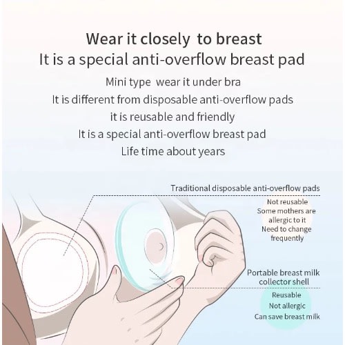 This breast milk collect shell is wearable to put in the bra, it collect the breast milk for breastfeeding mommies. It is also the nipple shield to protect the nipples.