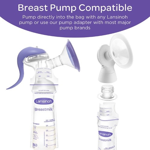 25 X Breastmilk Storage BagsPerfect for storing in the fridge or freezer, upright or laid down with no risk of leaksPre-sterilised and crafted from food-safe polyethylene with a hygienic, tamper-evident, and secure tear-away topEach bag holds up to 6floz/180ml of breastmilkAttach and pump directly into bag with any Lansinoh pumpsWrite-on tab to keep track of how long the breastmilk has been stored