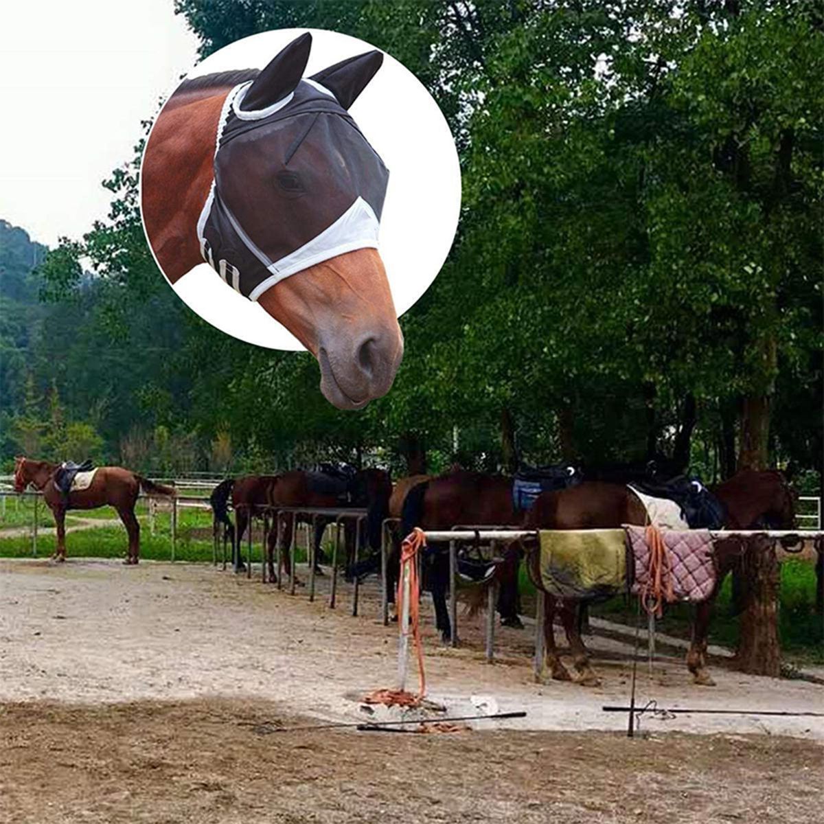 Buy Breathable Fastener Tape Horse Mask Horse Eye Shield Anti-mosquito Mask Mesh Mask with Ears UV Protection Removable Horse Mask in Nigeria