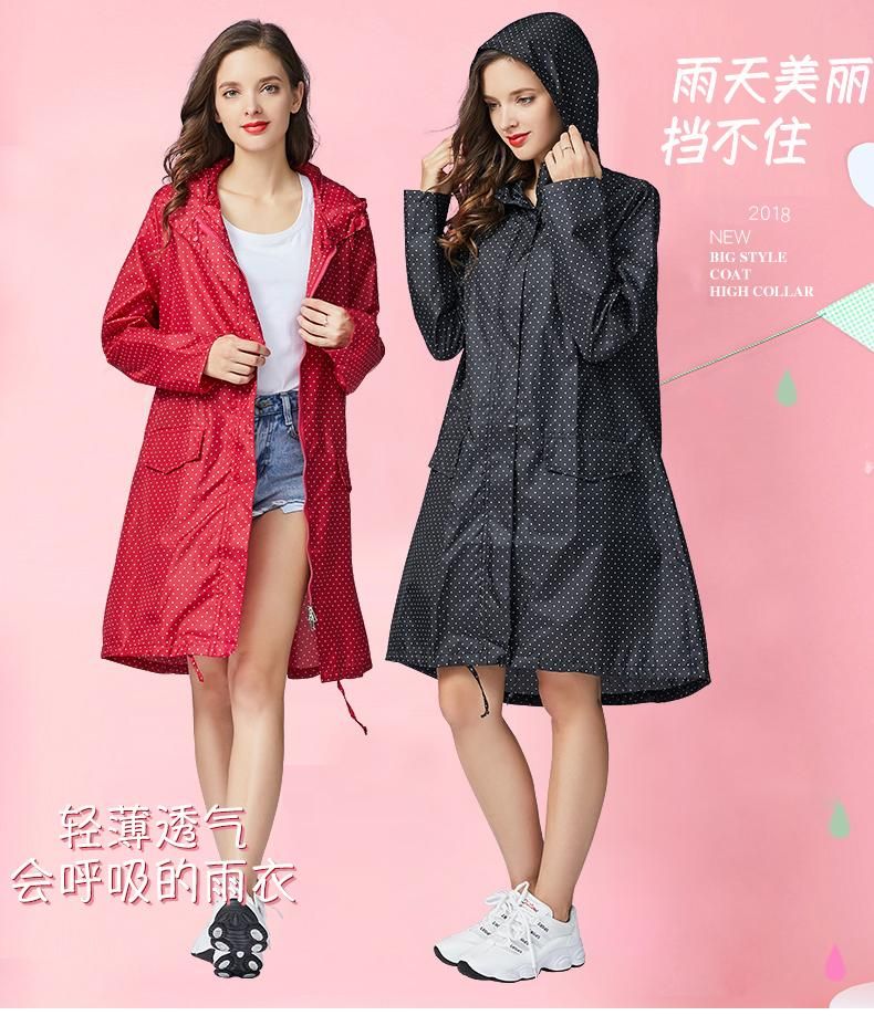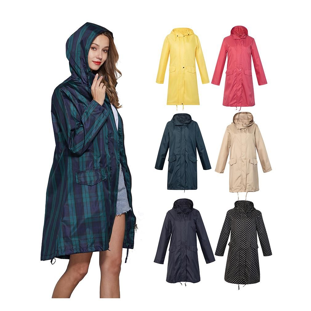 1X Breathable Portable Ladies Long Raincoat - deep blue