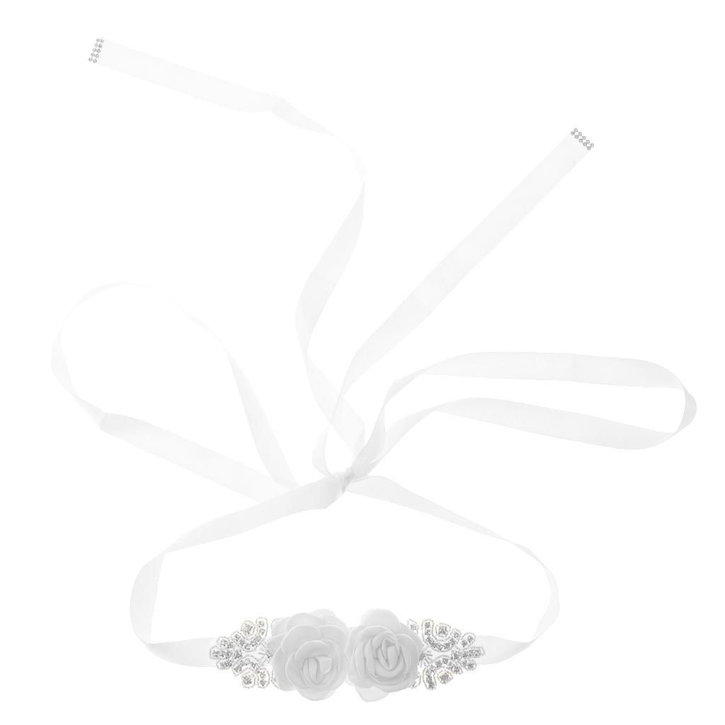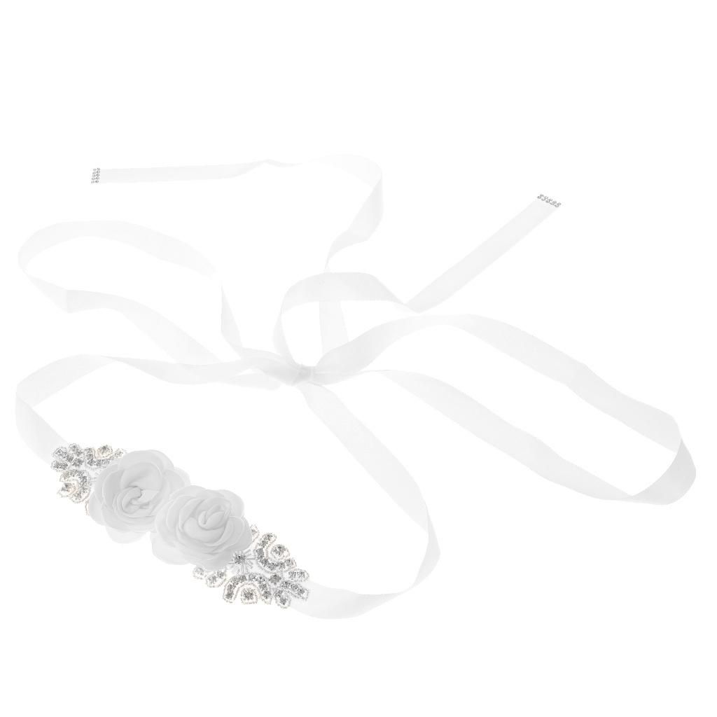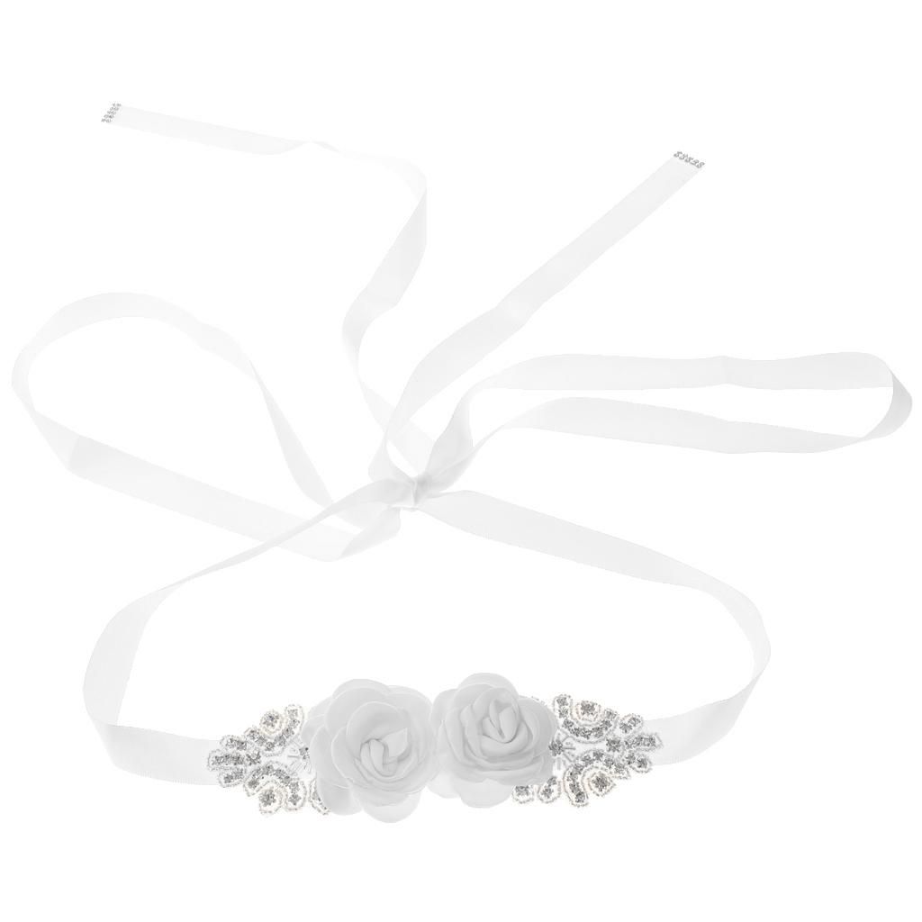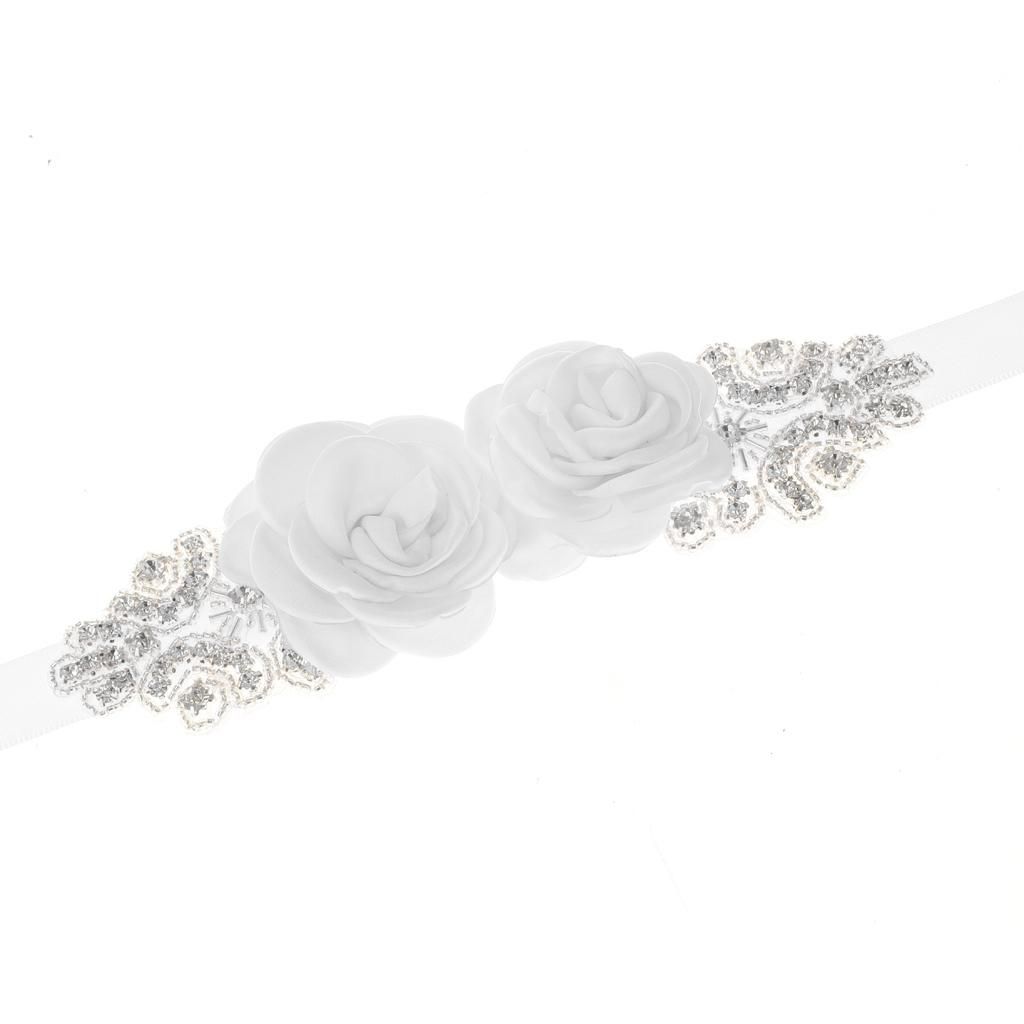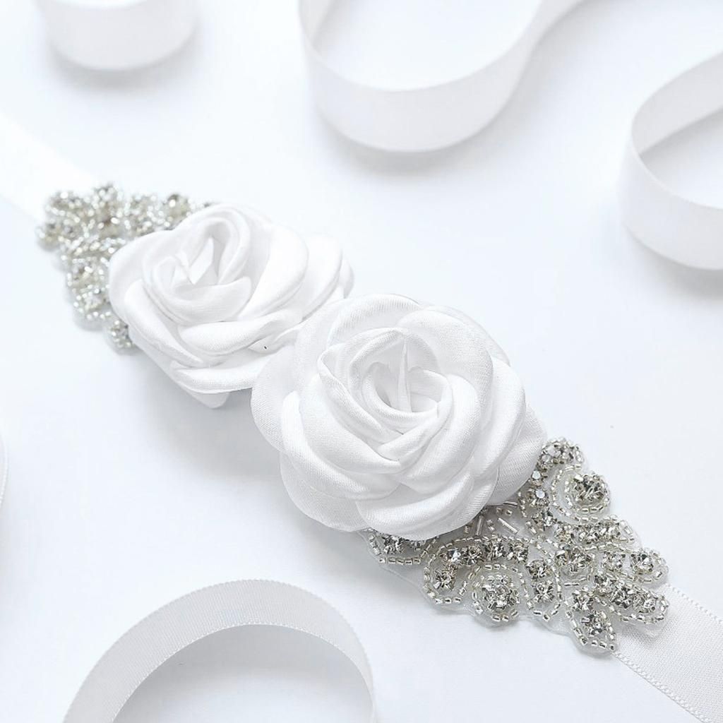 Delicate and elegant bridal wedding dress sash with flowers and rhinestones decor.