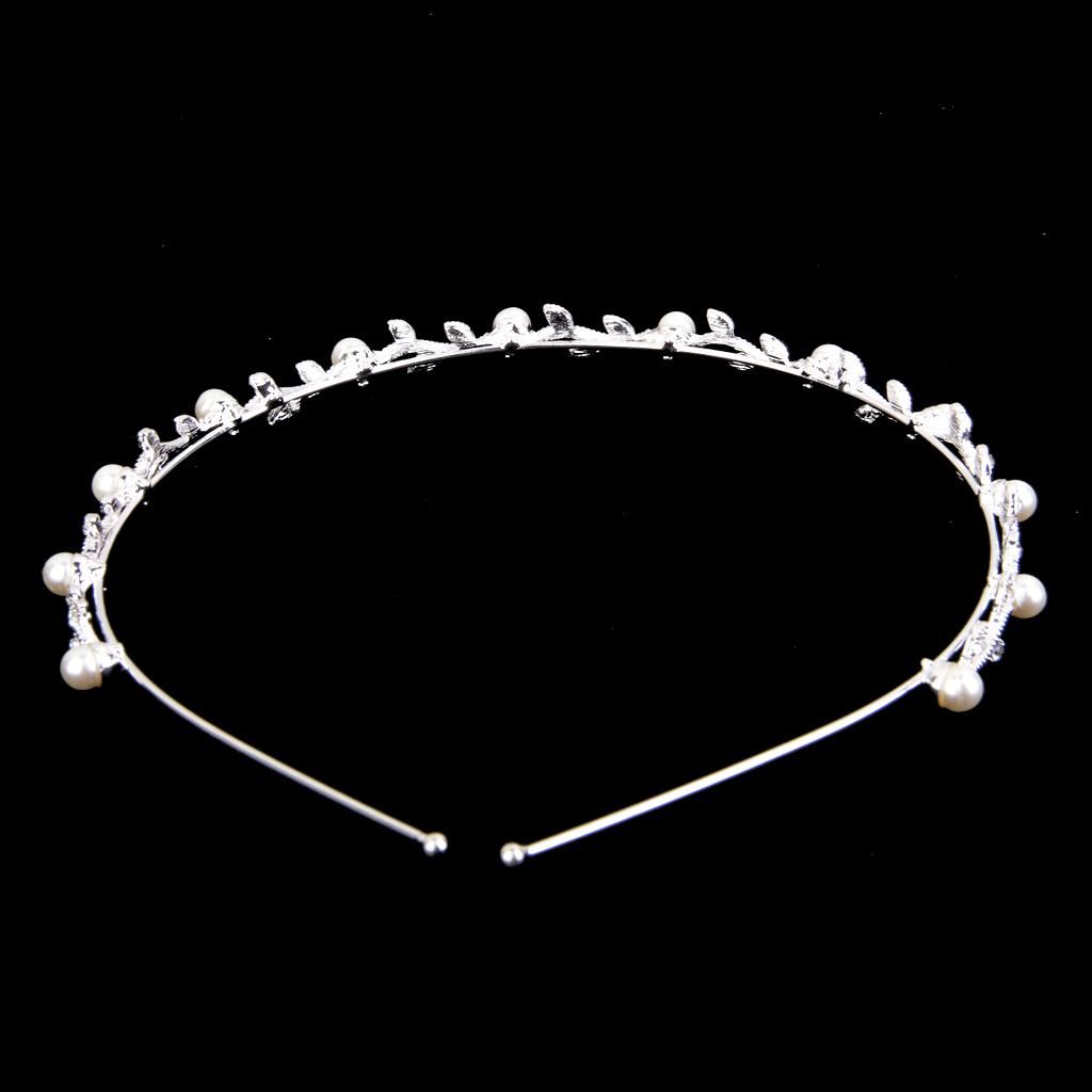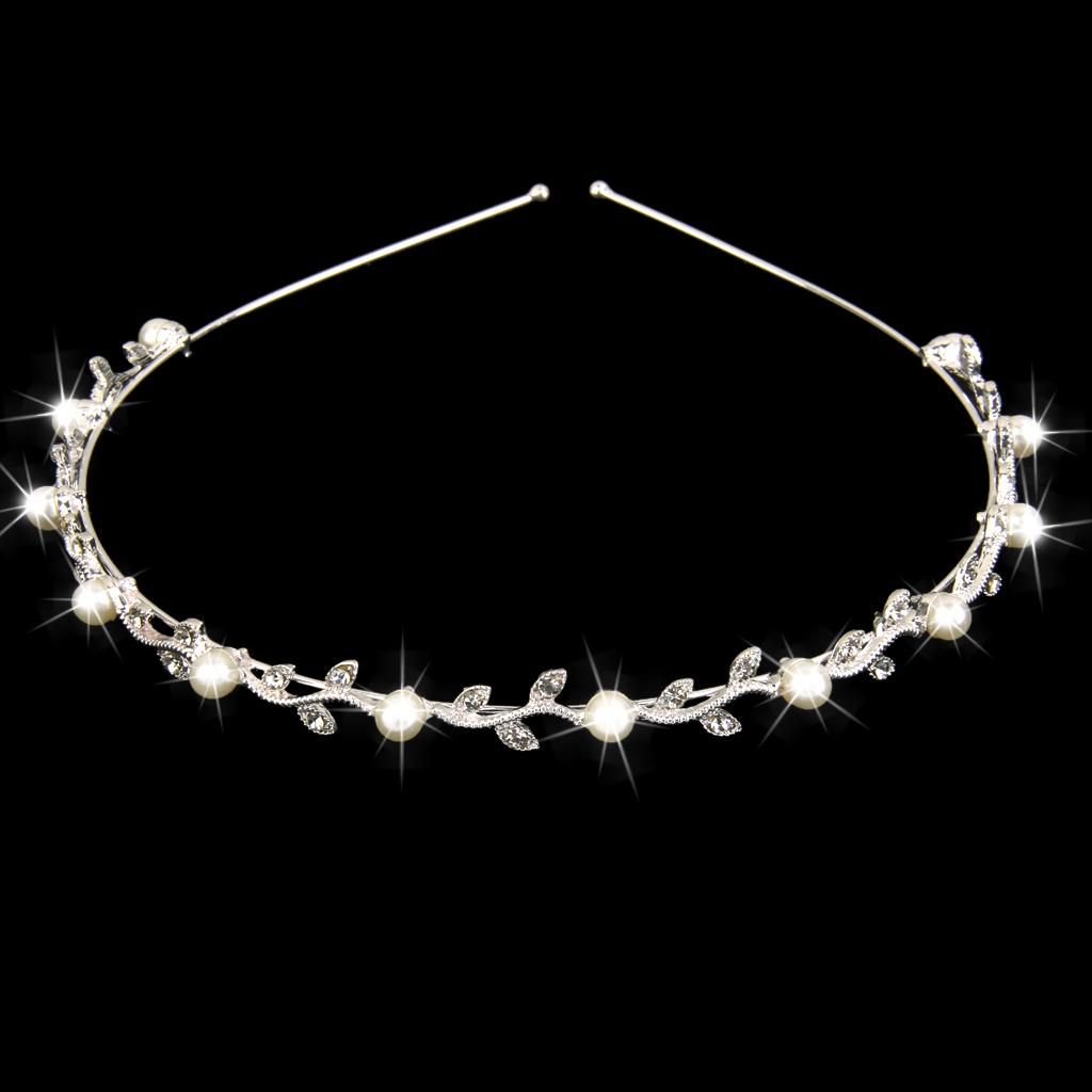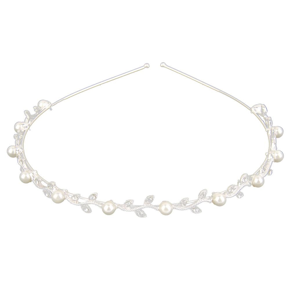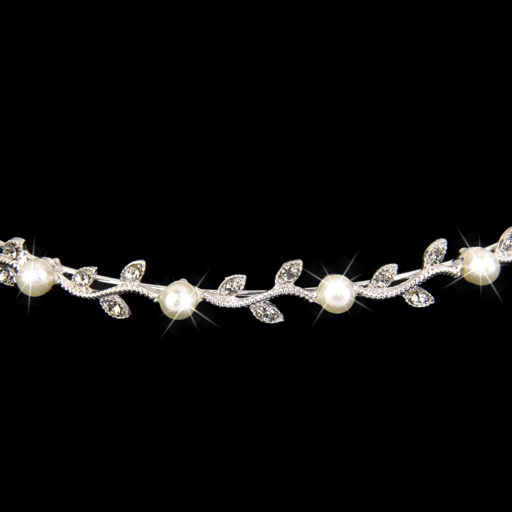 Bridal Headband Girl Leaf Pearl Wedding Prom Tiara Sliver