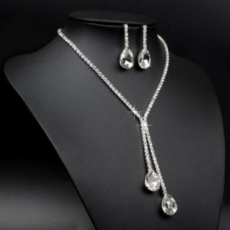 Features: Necklace and Earrings Set, Luxury Design, Shining Rhinestone, Waterdrop Shape