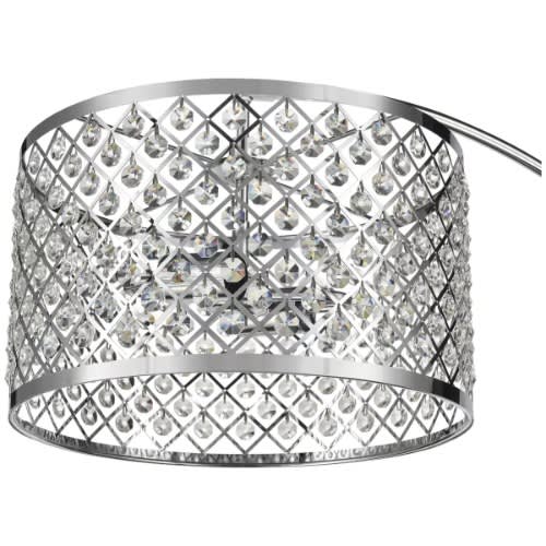 The polished chrome base of the Gisele Crystal 3-arm Floor Lamp adds a decidedly contemporary flare. The diamond shaped cut-outs of the shades have crystal inserts adding faceted brilliance and glow to the room. Includes: 3-2 WATT LED BulbsFeatures: