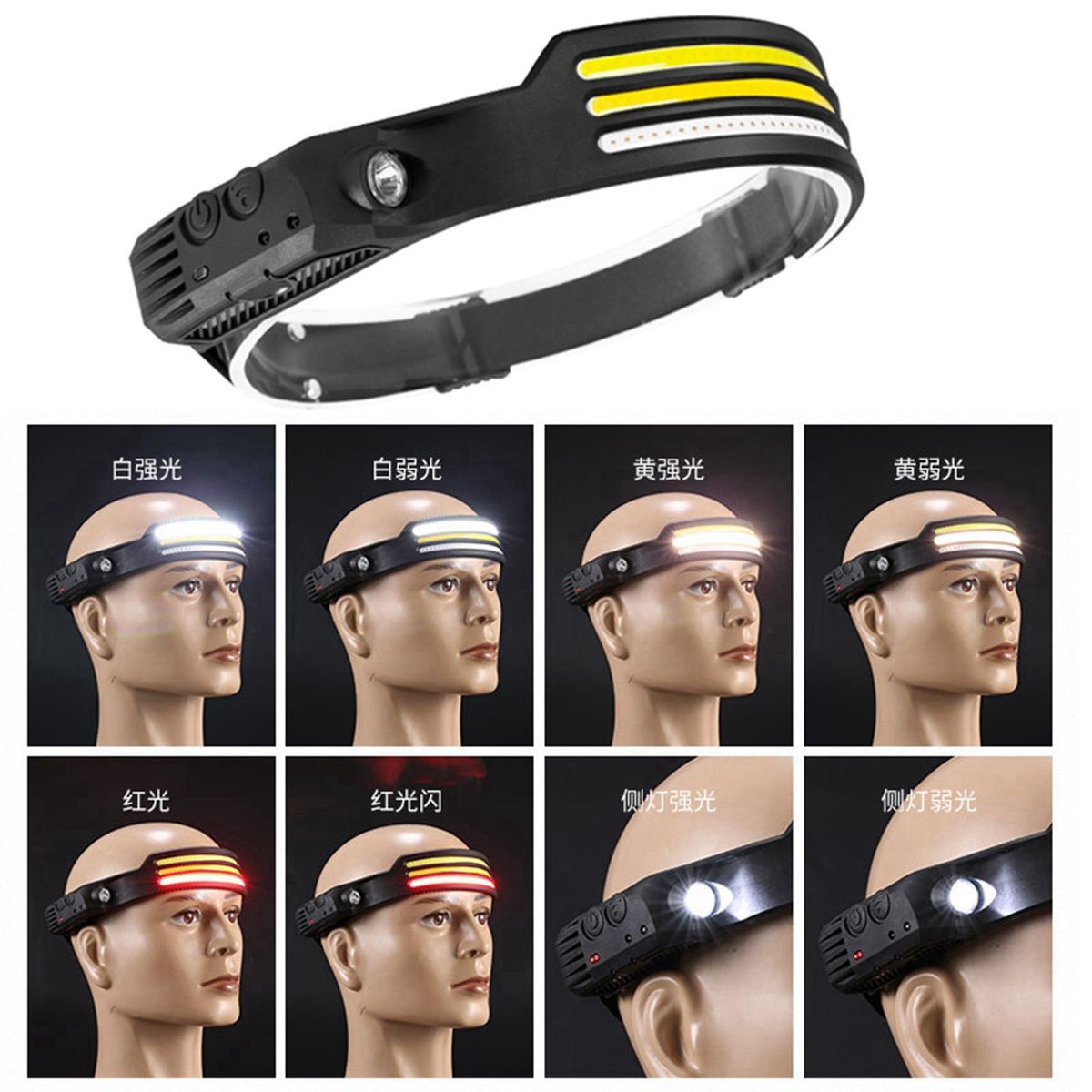BRIGHT Headlight: Large area of high brightness LED COB, expand your vision, make the night more bright. wave sensor switch, suitable for any situation.ADJUSTABLE: An adjustable headband makes running Headlight comfortable to wear.LIGHT MODES: Our Head Lamp light modes of brightness meet your daily needs. Press and hold the switch for 2 seconds, the white and yellow light is always on, and press it again to strobe flash.LIGHTWEIGHT & ADJUSTABLE HEADLIGHT: The headband is secure that won't loosen up or flop around, waterproof designed headband Light for long distance runners or anyone else looking for a comfortable fit.WIDELY USED This portable headlight is suitable for many applications such as camping, running, working, hiking, or anything else you need a powerful hands light.
