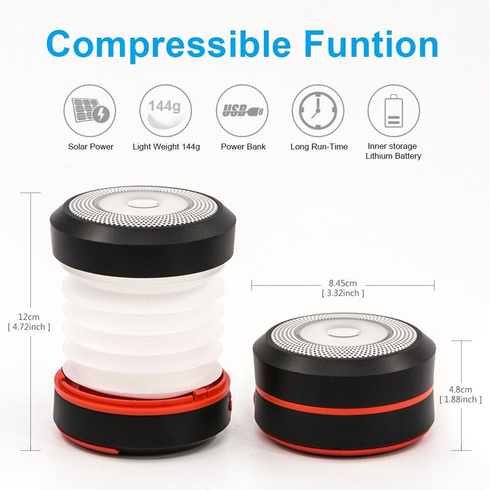 1X BRILEX Solar Lantern Portable LED Lamp USB Rechargeable collapsible and inflatable Waterproof IPX5 Light Outdoor Camping Light