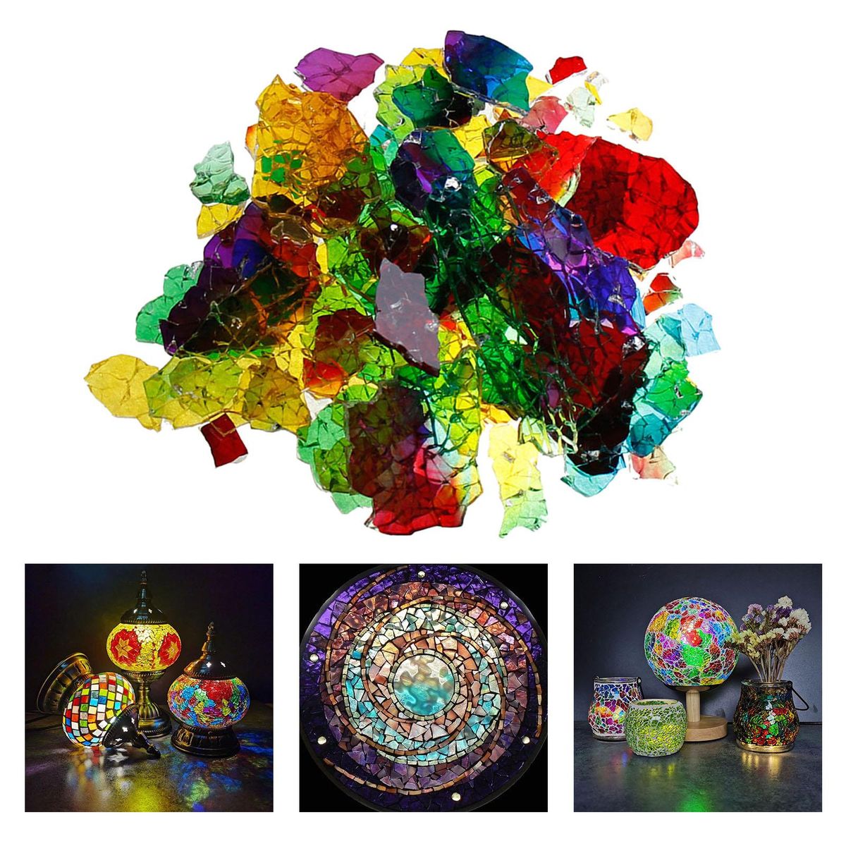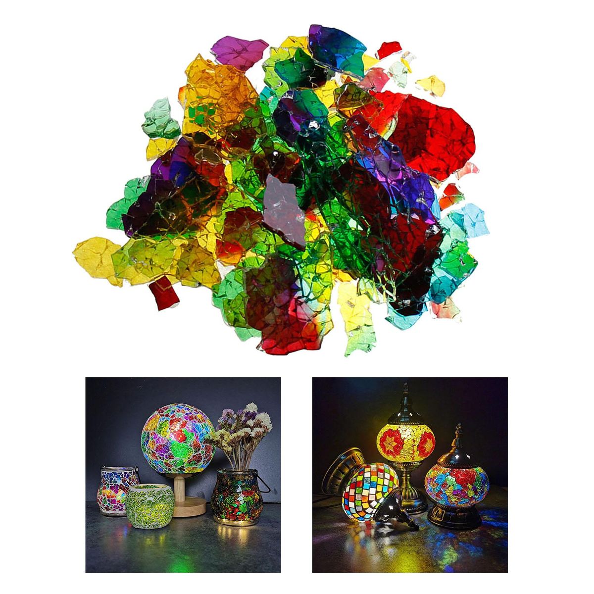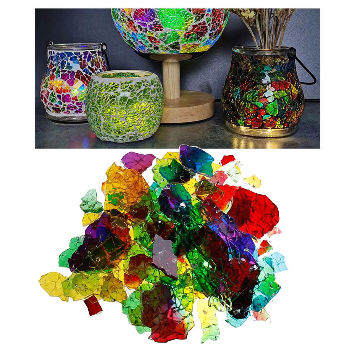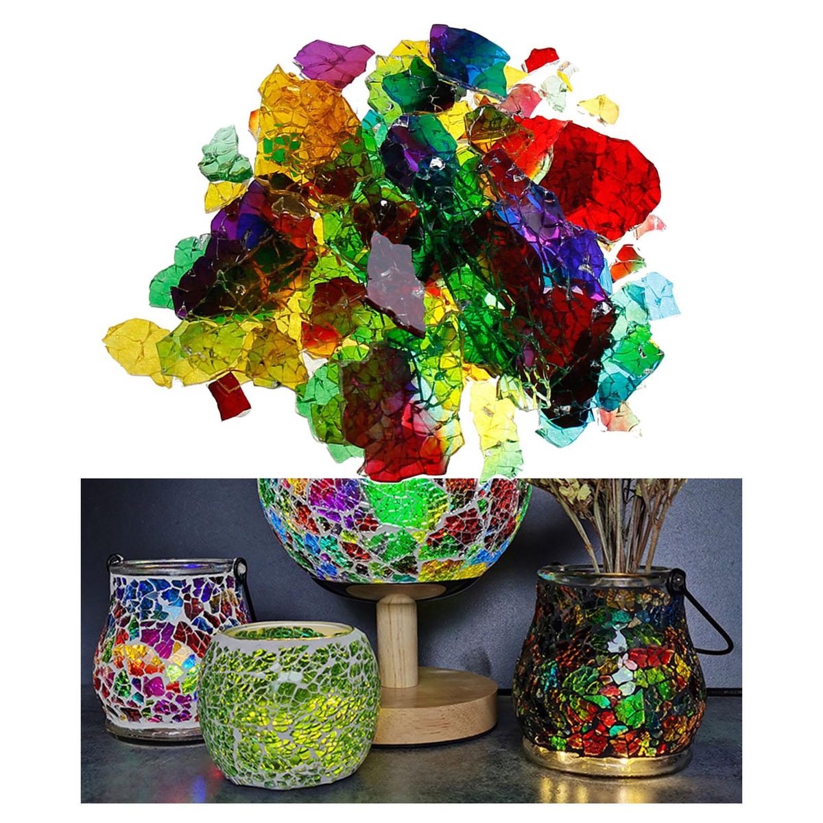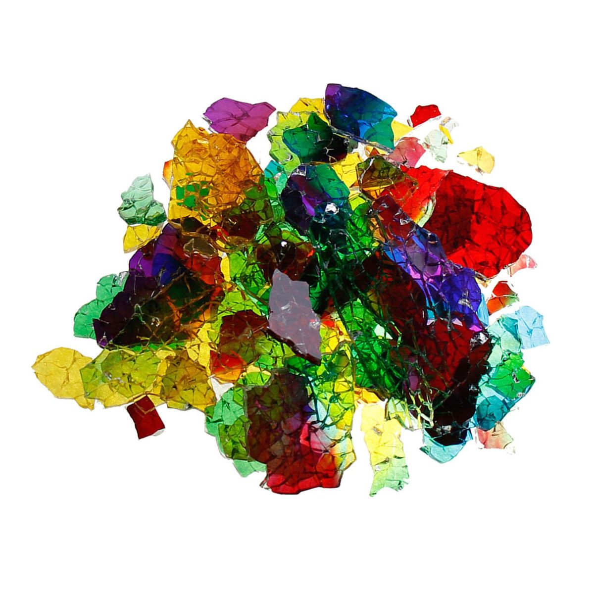 Package includes approx 300g crushed stained glass pieces in different shapes.