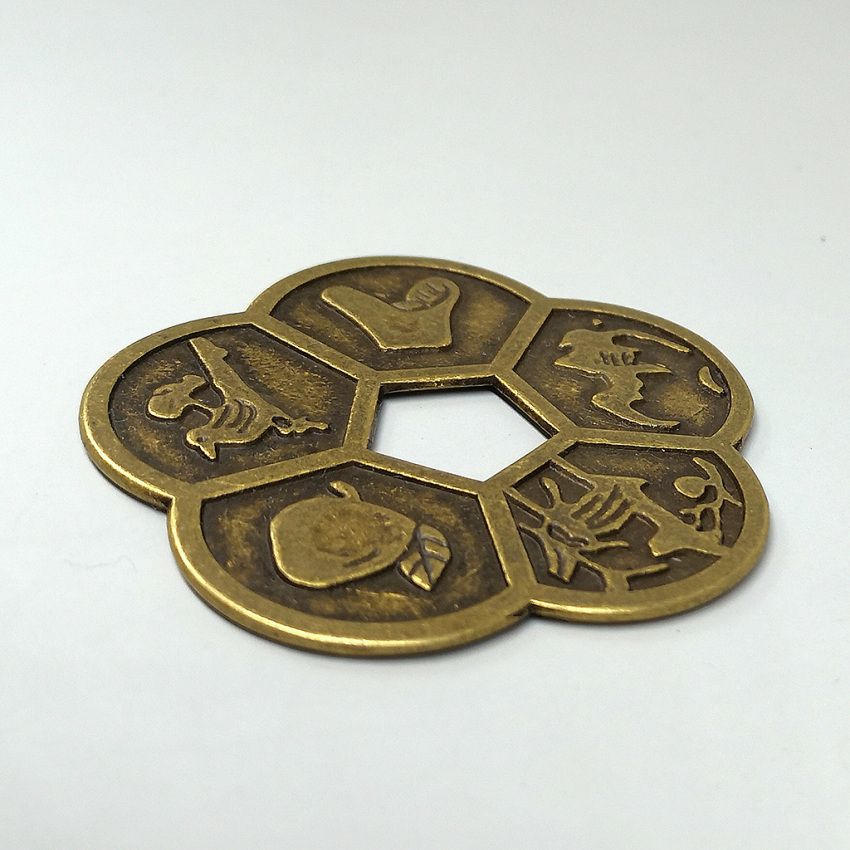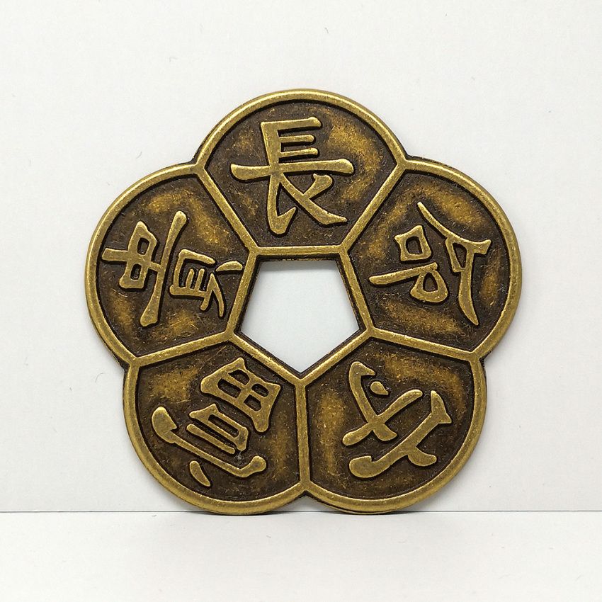 The coin has Chinese character on one side and patterns on the other. Bring good luck and good fortune.