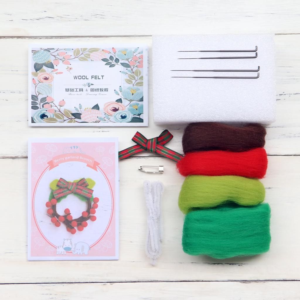 Felting Kit;Brooch Felting Kit;Felting Starter Kit ; Handmade Felted Wool Brooch;Wool Roving Felting Basic Kit;Handwork Materials;Hand Spinning DIY;DIY Needlework supplies;Wool Felting Craft
