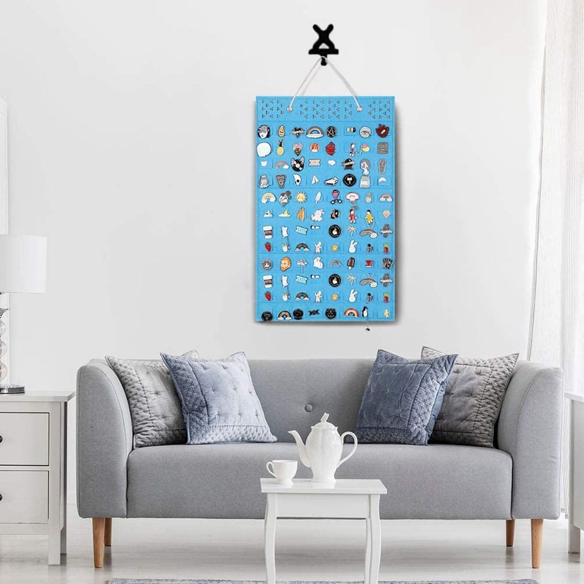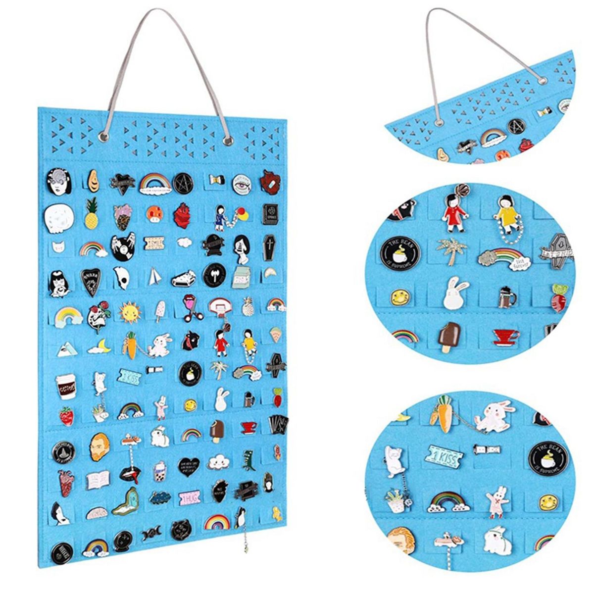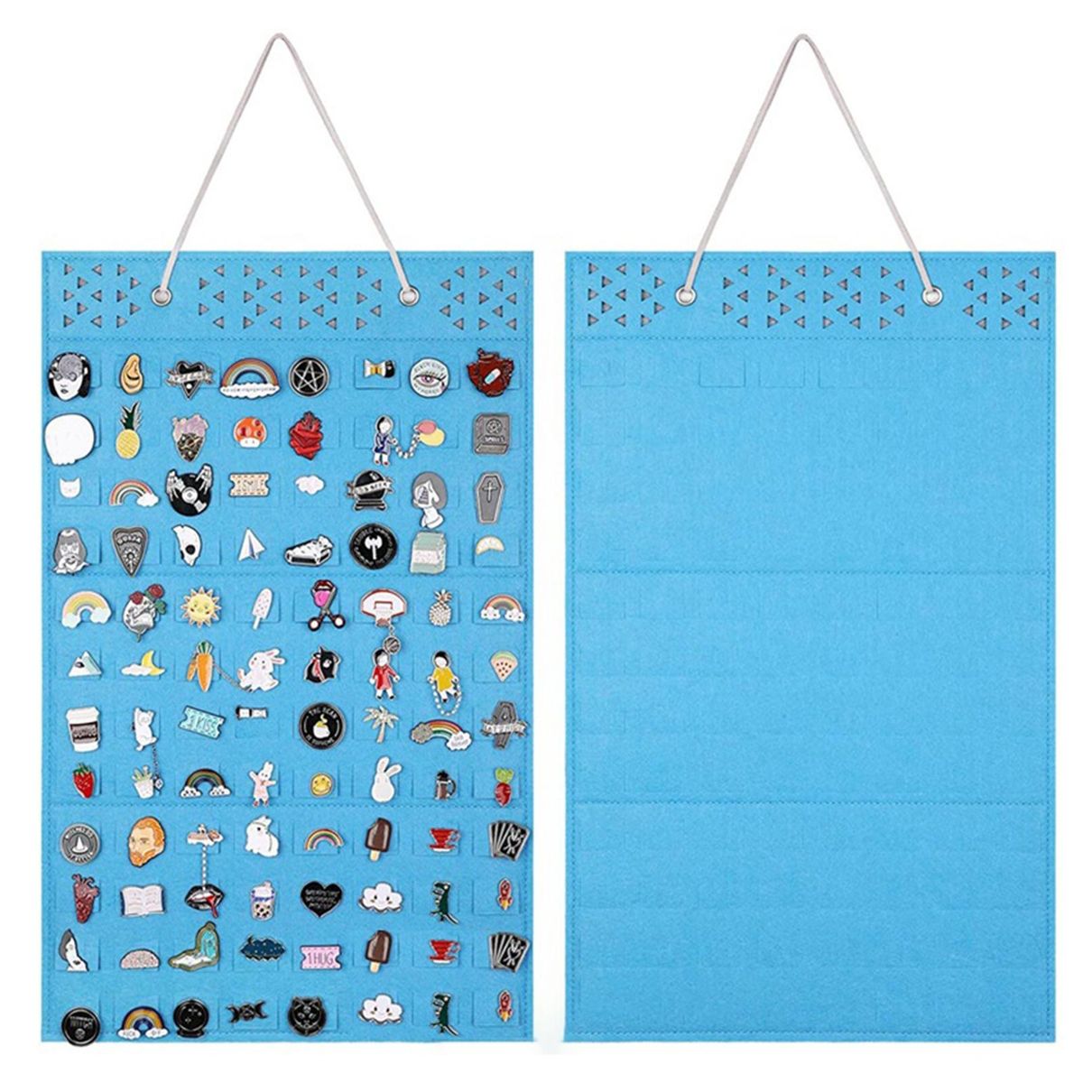 Our brooch storage bag, the ultimate solution for organizing and safeguarding your treasured brooch collection. crafted from natural felt with exquisite stitching, this pin board is designed to elegantly display your enamel pins. featuring a whopping 96 compartments of various sizes, locating your desired brooch has never been easier. our upgraded design now offers additional space to showcase your beloved disney trading pins, making it an essential accessory for any pin collector. hang it effortlessly on your wall using the built-in rope and free up valuable space in your home. not only does it serve as a practical storage solution, but it also doubles as a captivating wall decoration. the pre-cut holes eliminate the need for tedious hole punching, ensuring a hassle-free setup. this versatile hanging bag can also accommodate earrings, ear clips, buttons, hair clips, and more. whether you're an avid pin collector or seeking a unique gift for friends or teens, our brooch storage bag is the perfect choice.