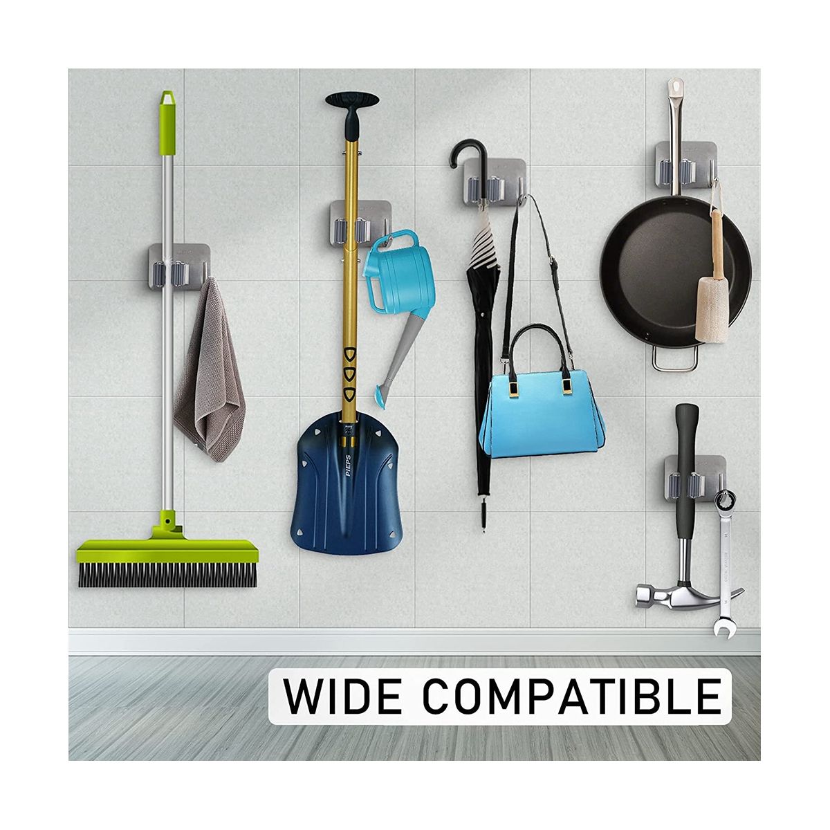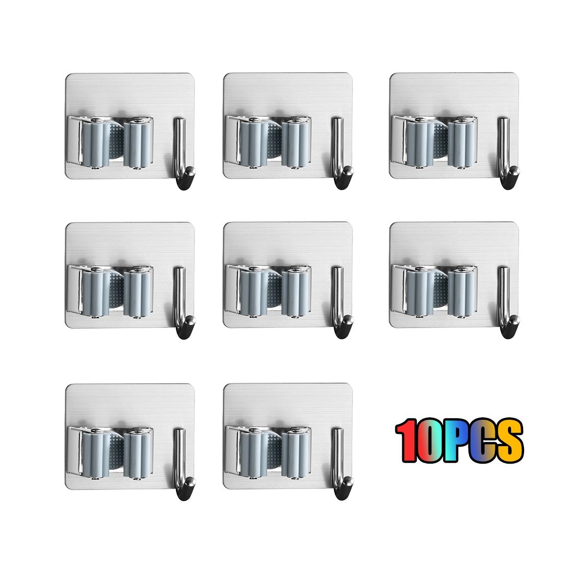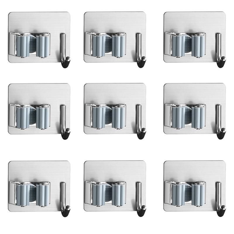 Buy Broom Mop Stainless Wall Mount Holder with Mopping Cloth Hooks Adhesive Tape Kitchen Garage Tool Rack 10 Pack in Nigeria