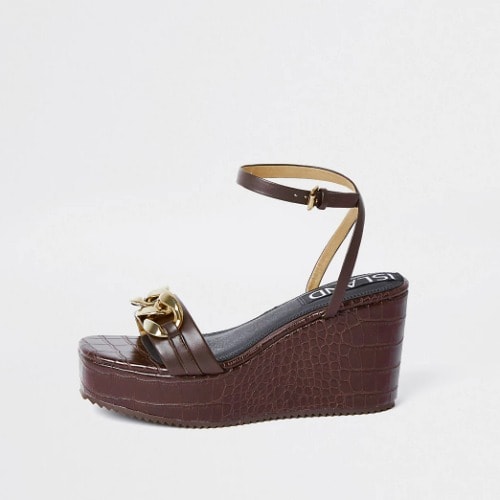 Buy Brown Gold Chain Detail Wedge Heels in Nigeria