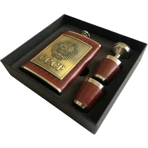 Buy Brown Leather Imitation Cover Hip Flask With Stainless Steel Shot Cup in Nigeria