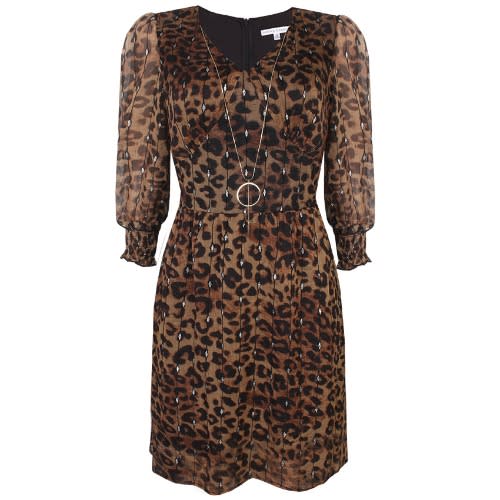 Buy Brown Silver Glitter Animal Print Necklace Dress in Nigeria