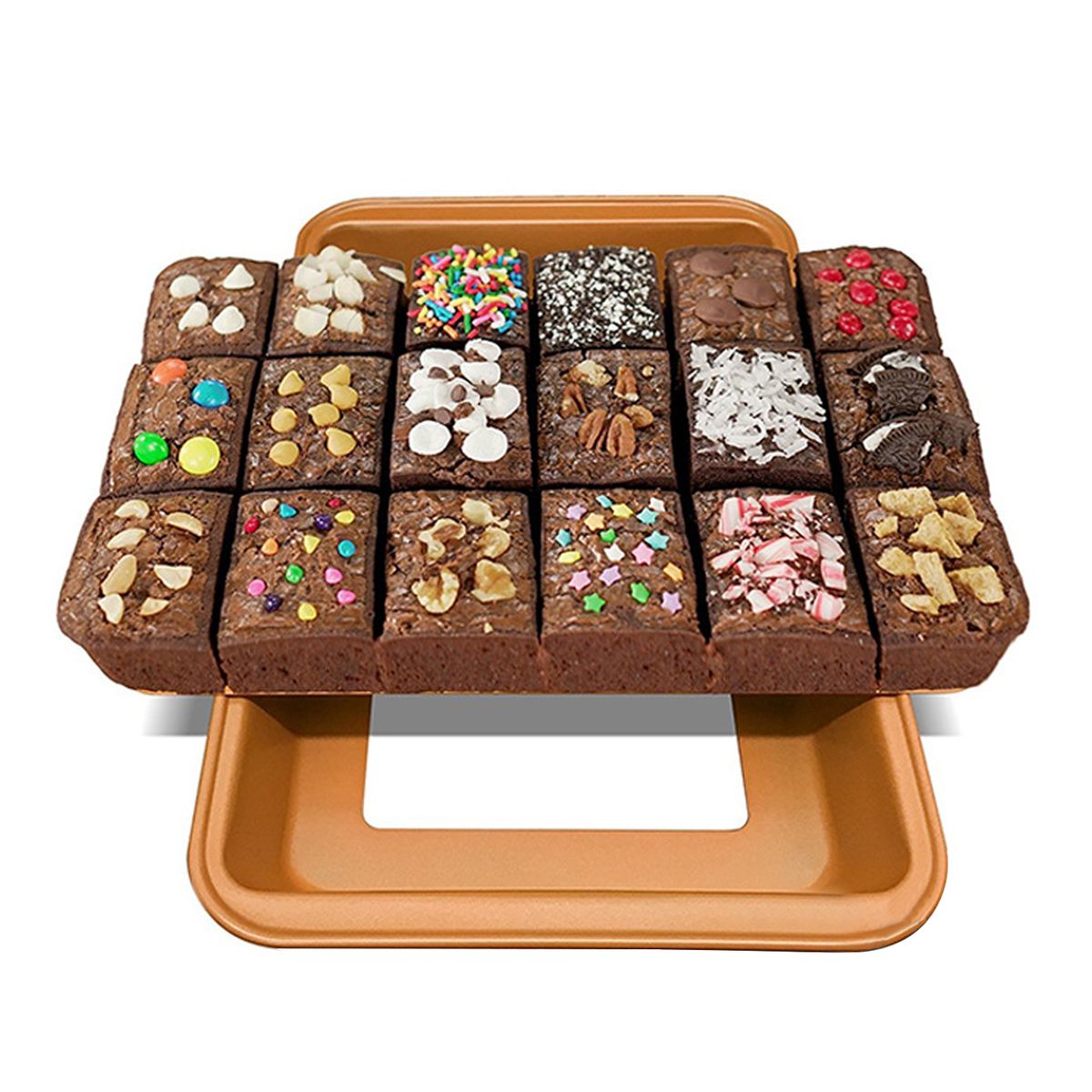 The brownie pan finished with premium food-grade carbon steel which makes fast heat transfer and even heat distribution. Oven safe up to 500℉/260℃. 18 types of brownies can be made at one time, meeting a large number of needs, easy to clean.
