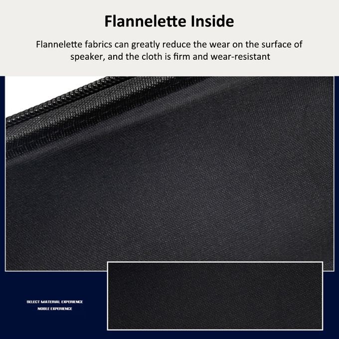 Inside design, this case is geared up with Separate compartment for the plug, and a room for the cables that come with the speaker.