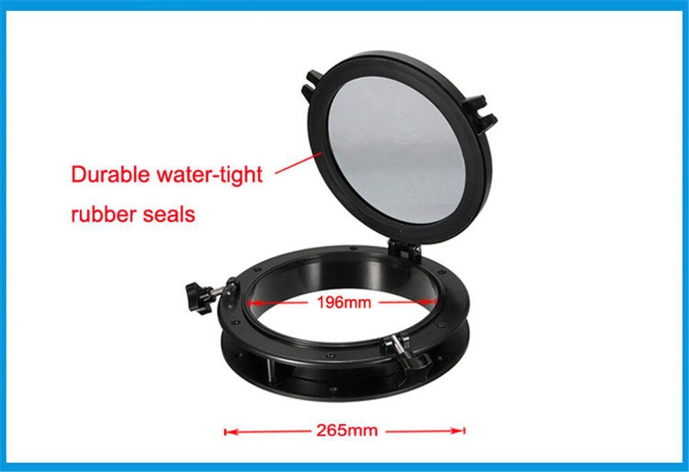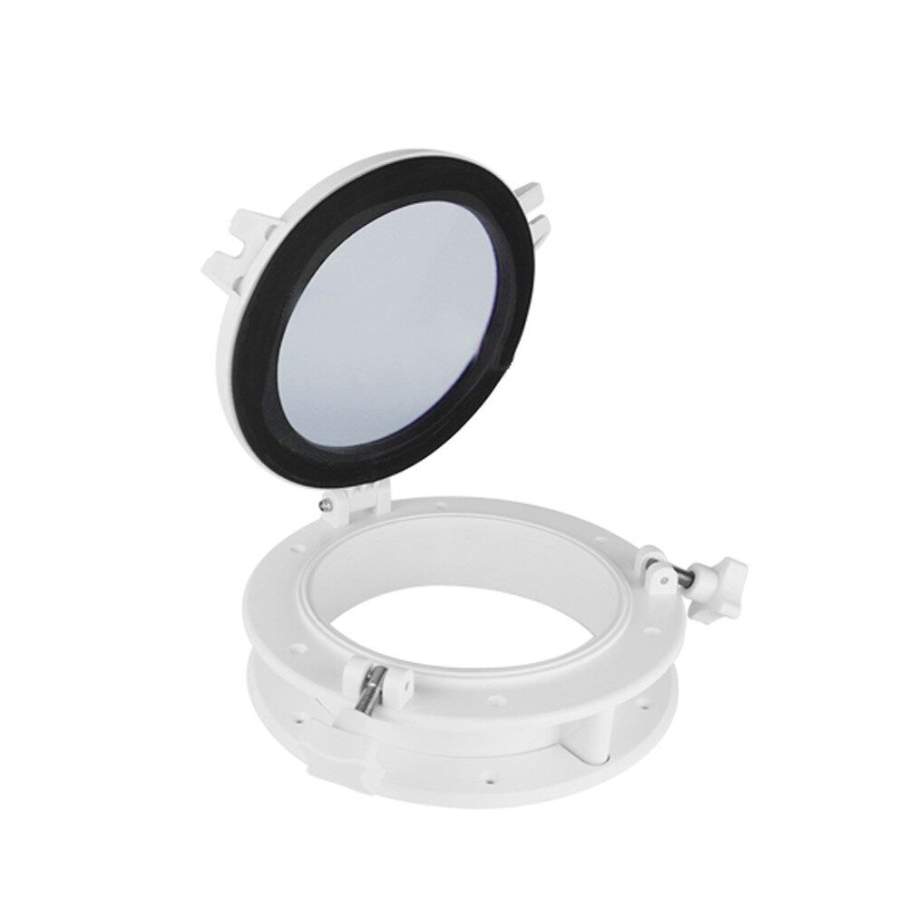 Round shape porthole for Boat/Yacht/RV/Industry Cars Strong ABS Molded Design, Anti-, Anti-Corrosive, Resistant. 4mm(0.15inch) thickness ,Strength, Clarity, and Chemical Resistance Corrosion free synthetic fittings and durable water-tight rubber seals Easy "-in" construction,The two fittings can be loosened to allow you to swing open the porthole Easy to install, pre-drilled countersunk fastening holes (screws not included)