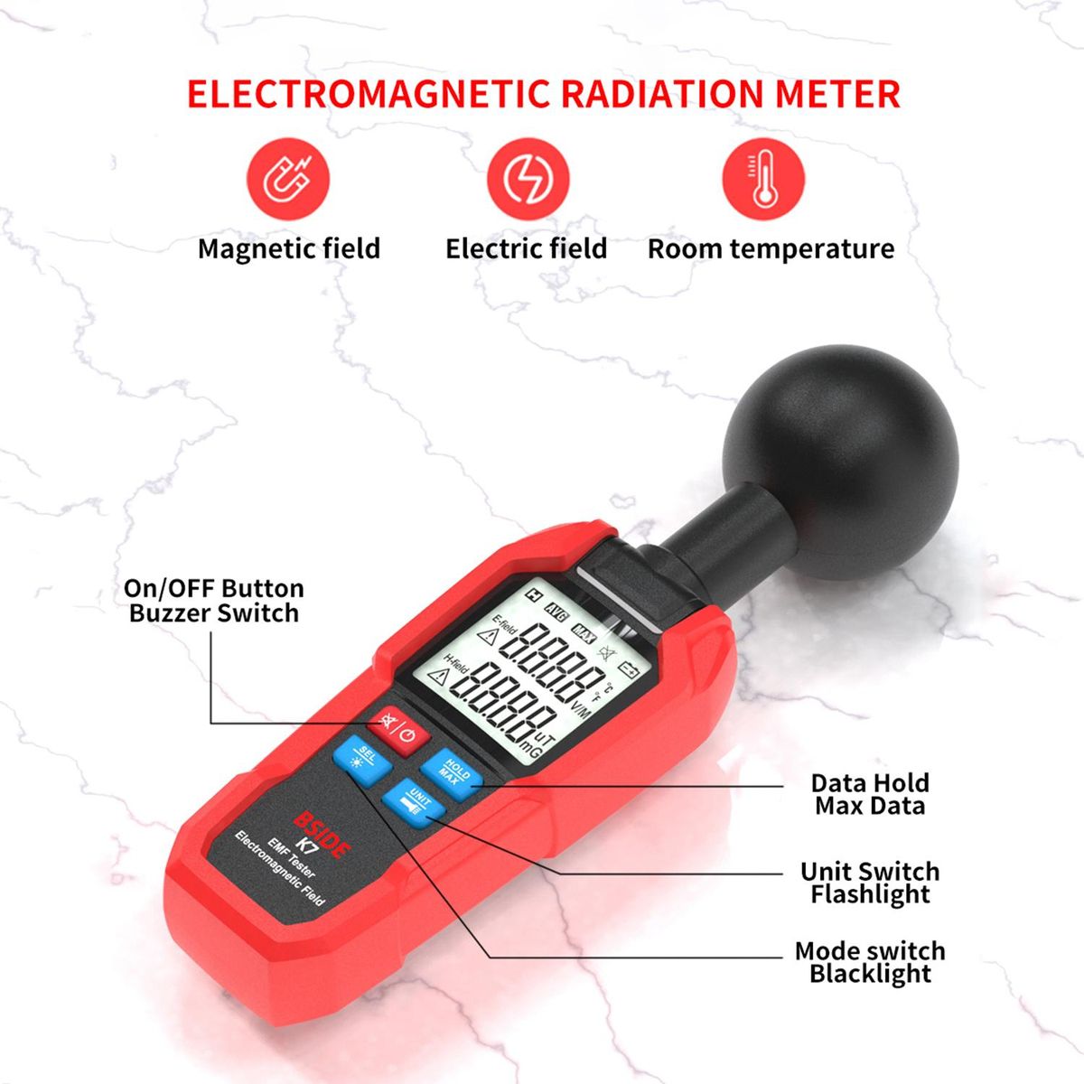 Buy BSIDE Multifunctional Electric Field Magnetic Field Radiation Detector K7 Handheld Electromagnetic Radiation Tester EMF Meter Portable Radio Frequency Detect Meter in Nigeria