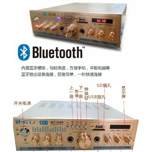 Teli BT-1228 Bluetooth 600W Karaoke Stereo 2CH Amplifier VU Meter Support FM USB SD with Remote