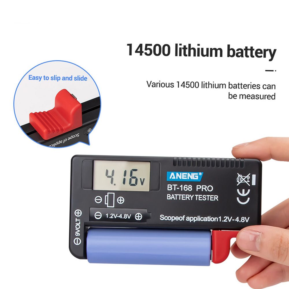 Wide test applications: 1.2~4.8V batteries type of AA, AAA, D, C, 6F22, 18650, CR2032, LR44, etc.