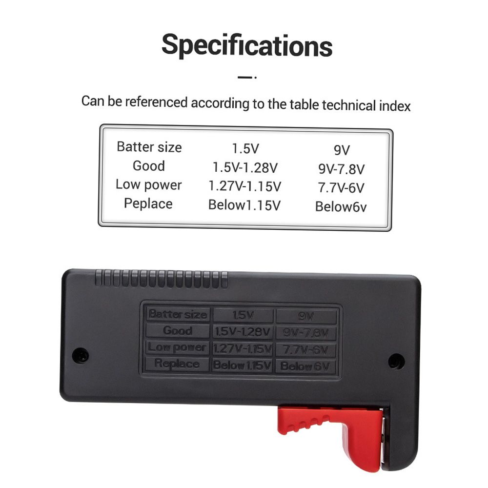 Features:Quickly test the battery capacity, no battery required.