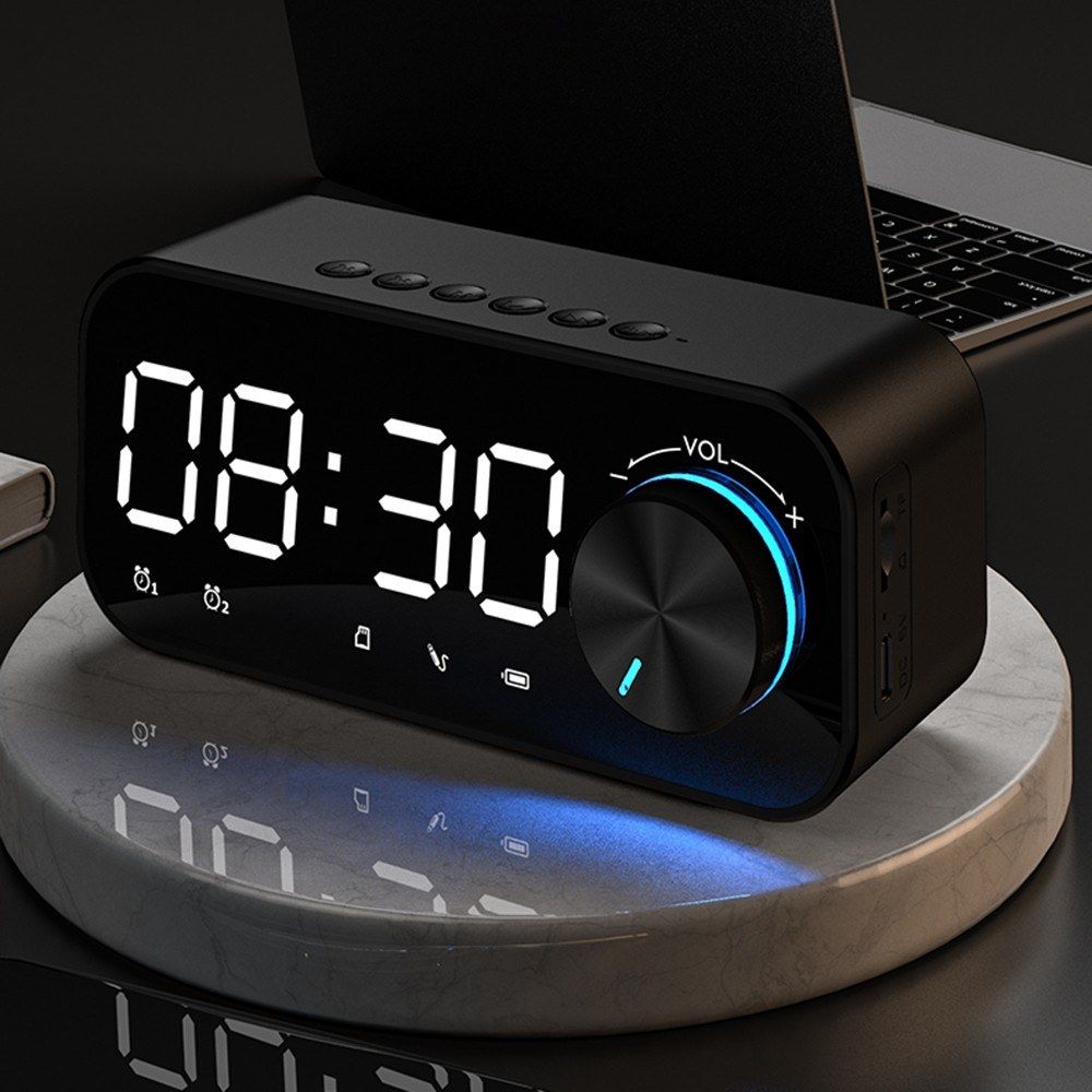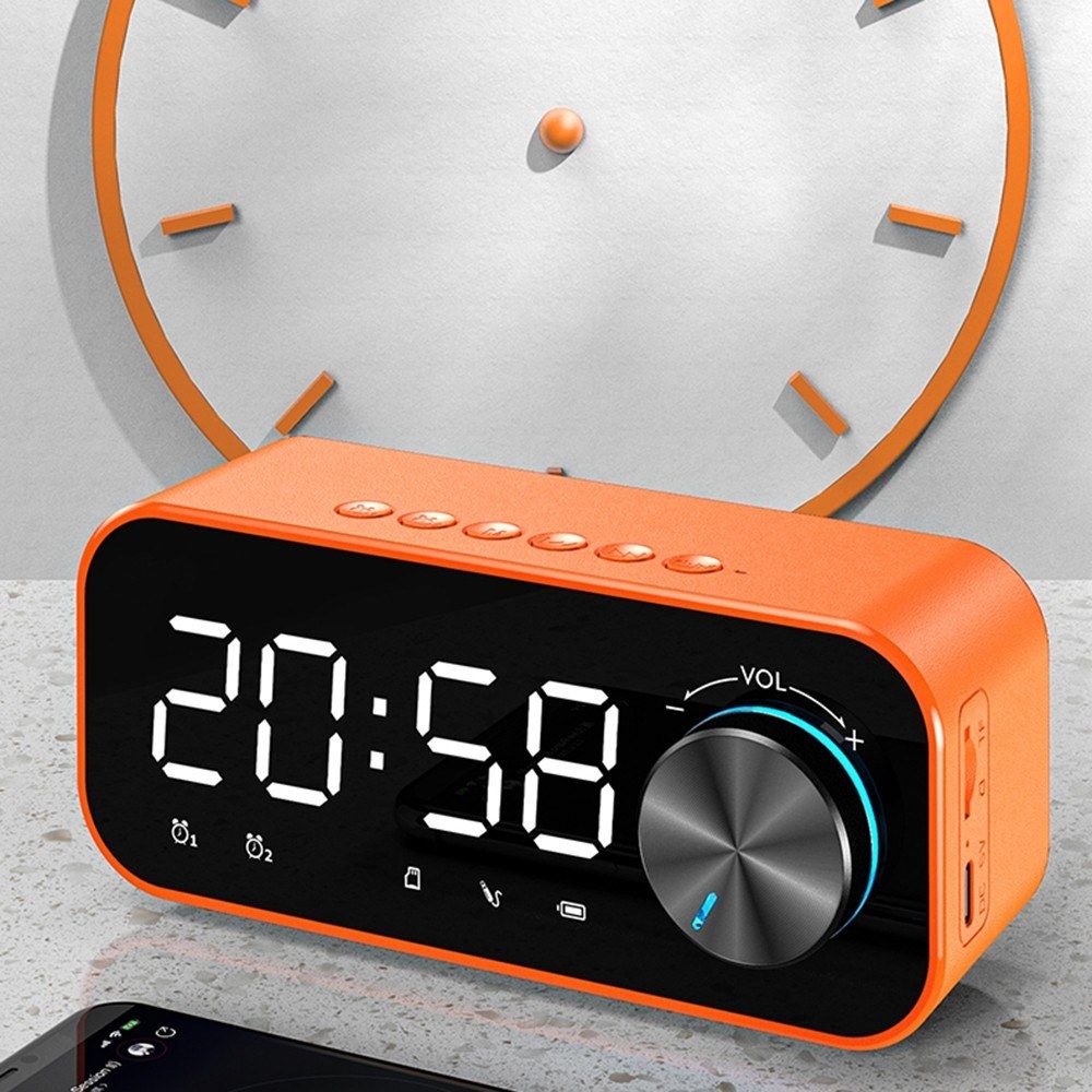 This BT 5.0 Speaker supports BT connection and TF card playing as well as enables you to set up 2 alarm clocks and adjust the brightness of night lamp. Besides, with volume controlling knob, you can quickly adjust the volume.